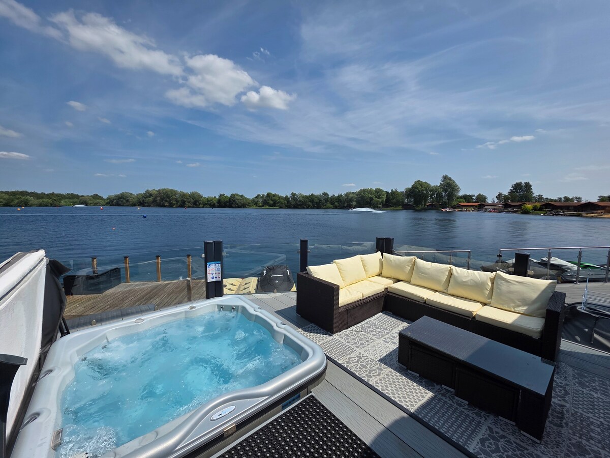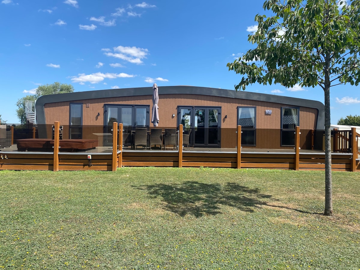 Large lodge with private fishing peg & hot tub on Ospery lake
