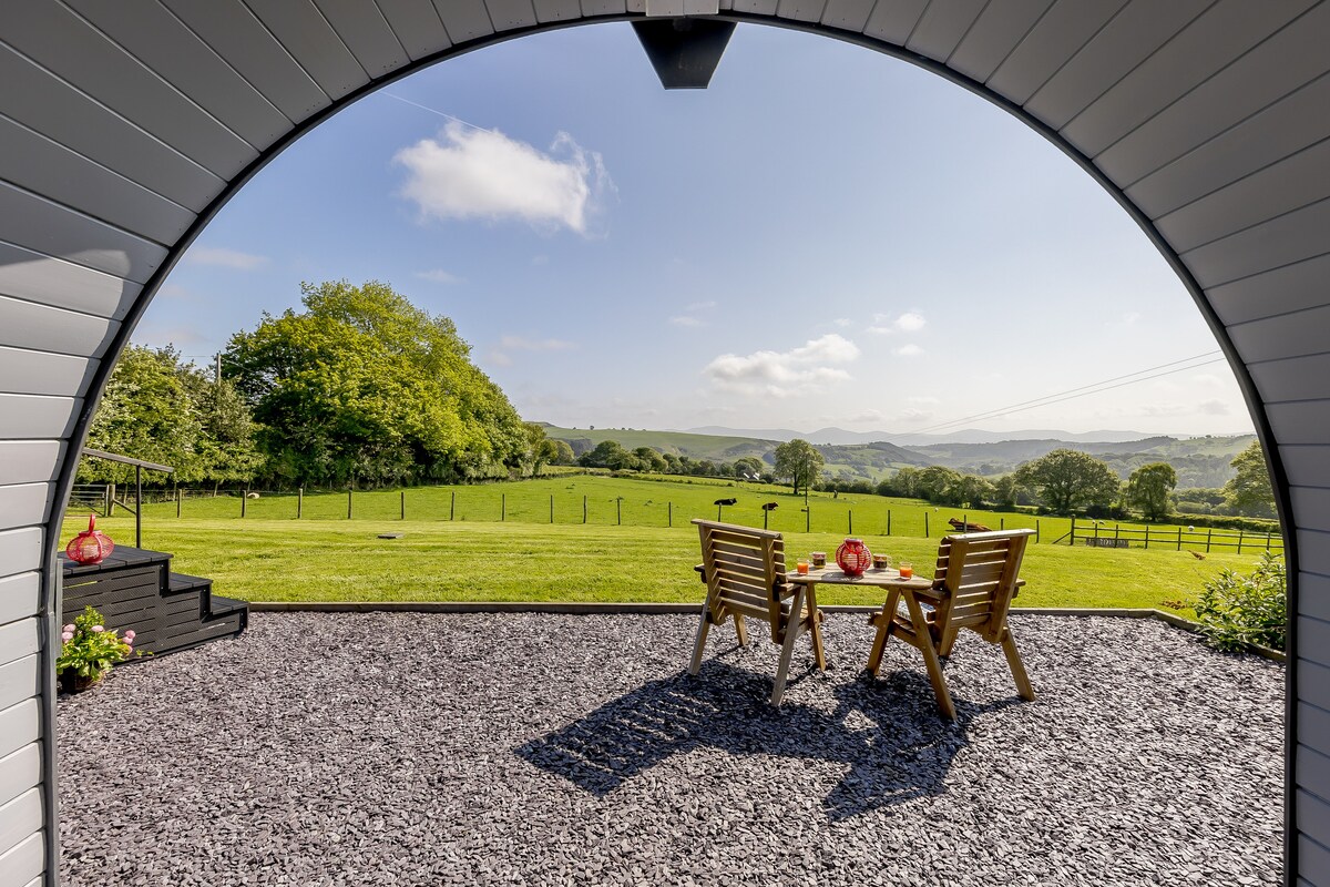 To the front of Alynfa you will be greeted with a large open decking with steps leading down to the lawn. As the sun flows round the house the front decking make it an ideal place to capture the afternoon and evening sun.