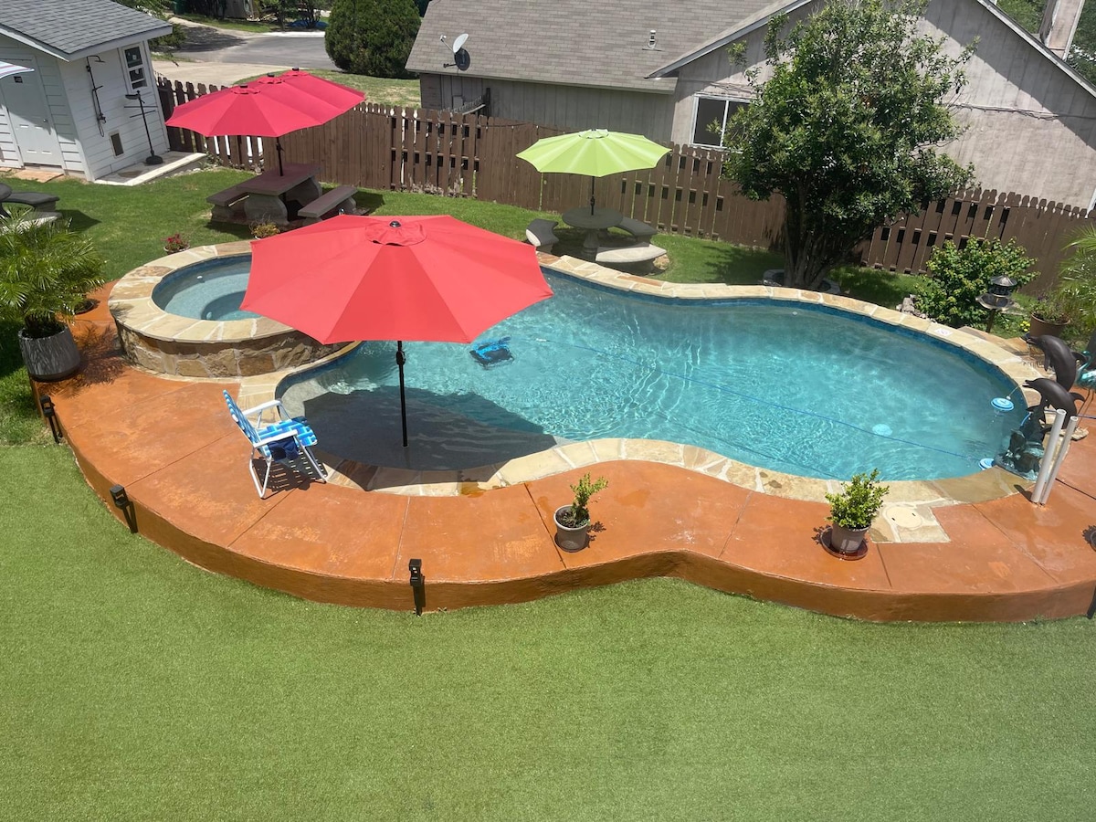 Welcome to LaCasaCasa, our serene single-story oasis in San Antonio's best neighborhood! This 2700 sqft haven boasts dual master suites, 2 king beds, 4 bedrooms, and 3 bathrooms, perfect for a peaceful retreat. Unwind on the 1000 sqft outdoor patio, complete with a fast-heating gas 10-person in-ground hot tub – relaxation at its finest! Nestled minutes north of downtown, revel in convenience without compromising tranquility. Ideal for groups seeking luxury and proximity to the city's heartbeat.