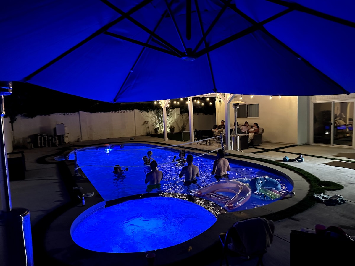 Your private oasis with a serene pool, cold plunge, cozy fire pit, and Tesla ev charger. Enjoy the open interior, featuring a remodeled kitchen, 3 bedrooms, an office, nursery, and 3 full baths. Located just 20 minutes from the beach and a short drive to award winning restaurants, breweries, parks, hikes, and more. Perfectly located in SoCal for visiting Santa Barbara, Hollywood, and theme parks, all while staying in a quiet, traffic-free cul-de-sac near a golf course. Your ideal getaway awaits!