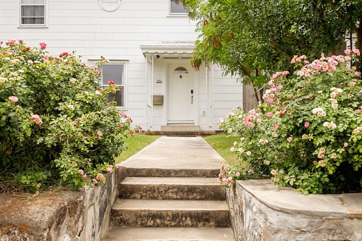just a 2-minute stroll to San Antonio River, Historic Brakenridge Park, the Witte Museum, neighborhood coffee spots. Hop in an Uber to get to The Pearl in 5 mins and 8 mins to The Alamo! The San Antonio Botanical Gardens are a 10-minute walk away through Mahncke Park. If you bring a car, there is safe and secure parking