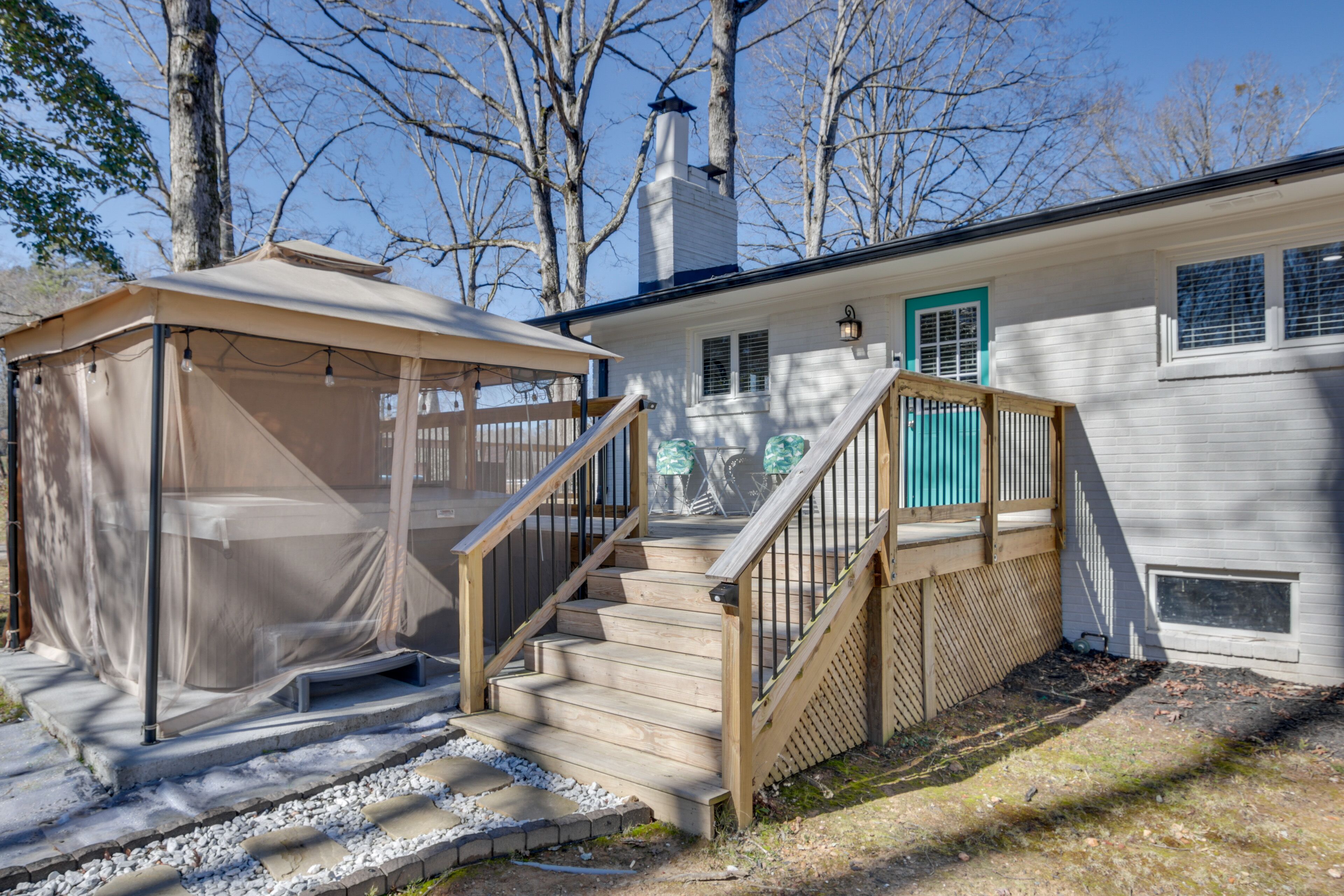Sunny basement walk out in shared building boasts a modern kitchen with brand new AC, full-sized electric range, microwave and dishwasher. The entire downstairs and fenced yard is yours, and private. Just minutes to trail heads (Uwharrie 5 miles, Morrow 6.8 miles) or watch deer, birds and beaver from your own patio. Enjoy twinkling light show as you relax in the covered hot tub. Hot tub pH and chemical balancing performed weekly with near religious zeal.