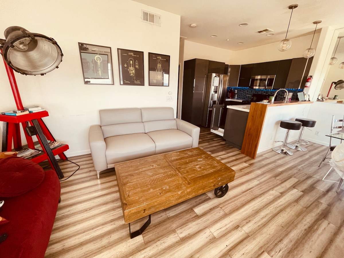 Comfy private outdoor patio with fire table, cozy seating for 6, BBQ grill and outdoor heaters. Private attached garage with new LG washer and dryer. Fully stocked kitchen, coffee/tea station, built in bar with wine fridge, home gym, community pool and spa