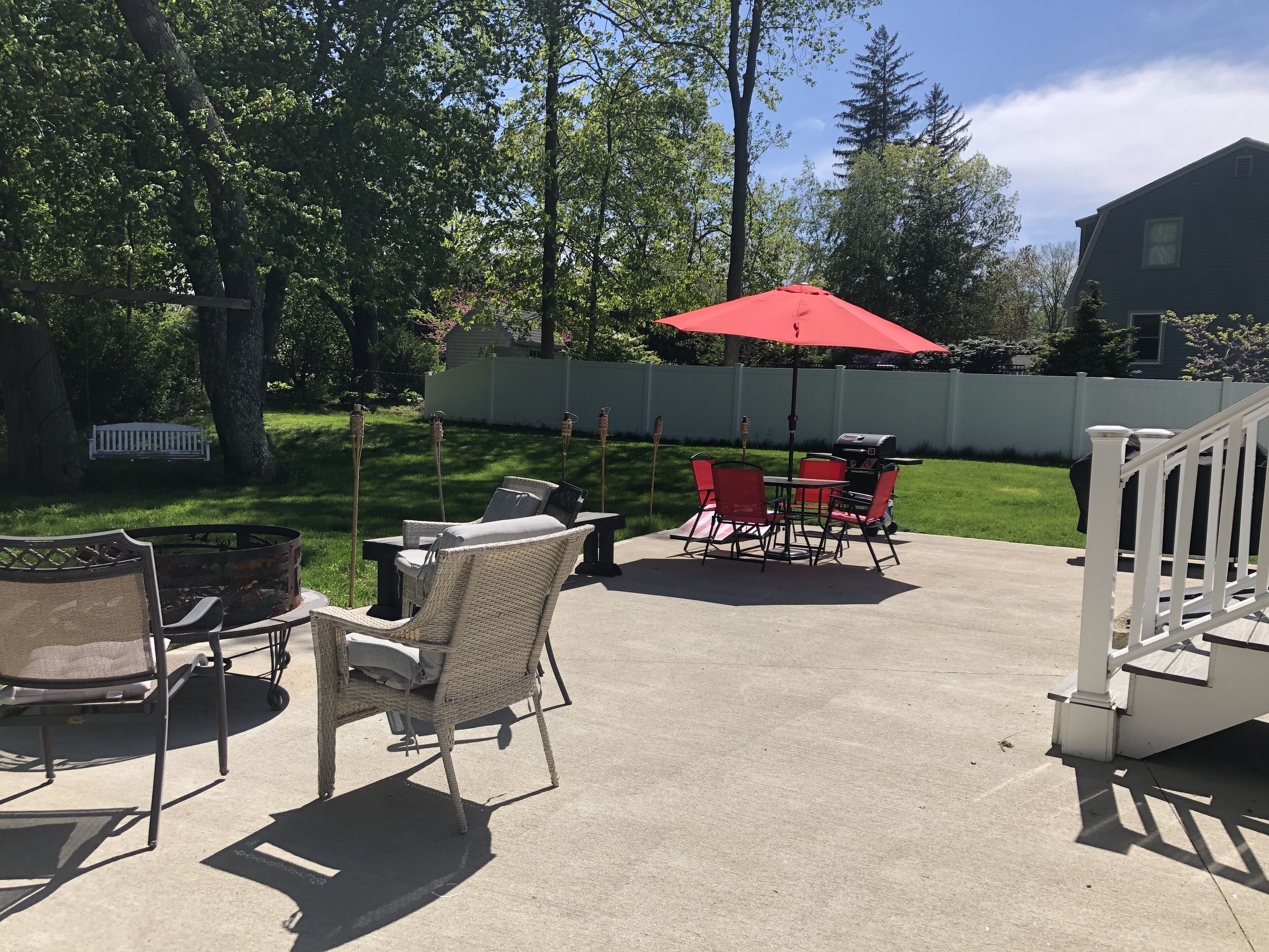 Two hammock's, patio and picnic furniture, directors chairs, umbrellas, and charcoal grills are also available.