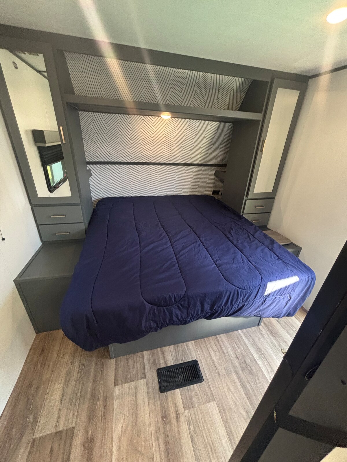 The camper sits right alongside a stunning 20+ mile paved trail, perfect for morning jogs, long bike rides, or sunset strolls. Prefer to stay in? There’s plenty of shaded outdoor space to unwind, and we’re happy to provide a charcoal grill upon request for the full camping experience.