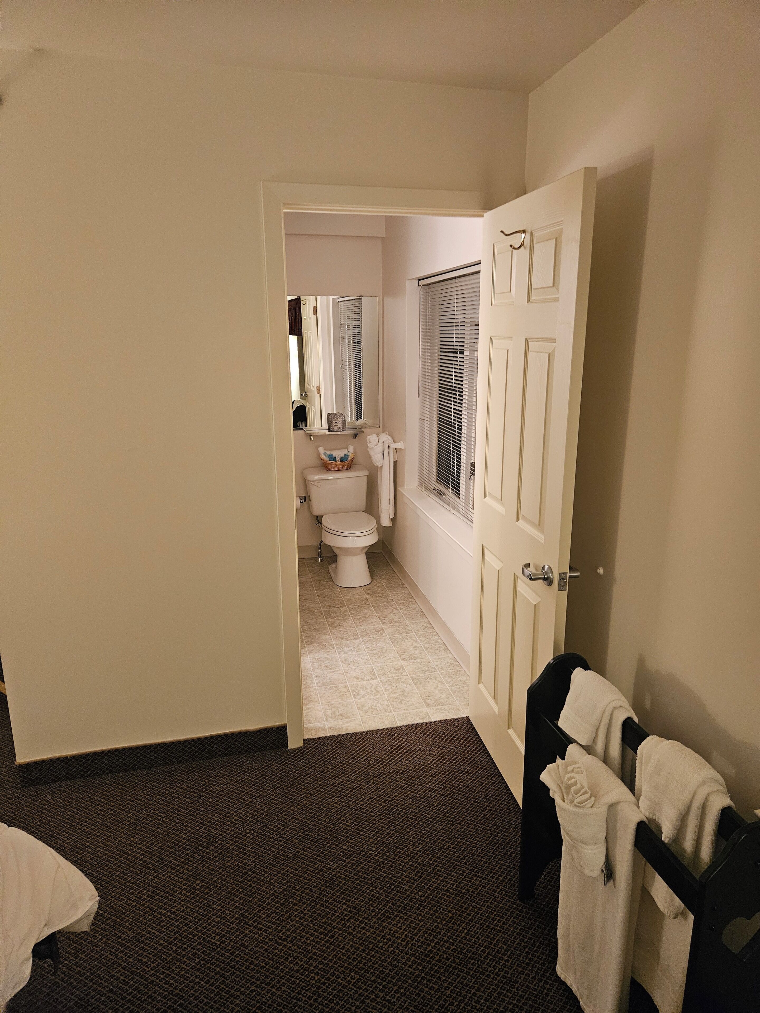 Second and third BRs share hallway accessed bathroom with step in tub/shower. Queen bed BR has accessible closet, Two twin bed BR has accessible closet.