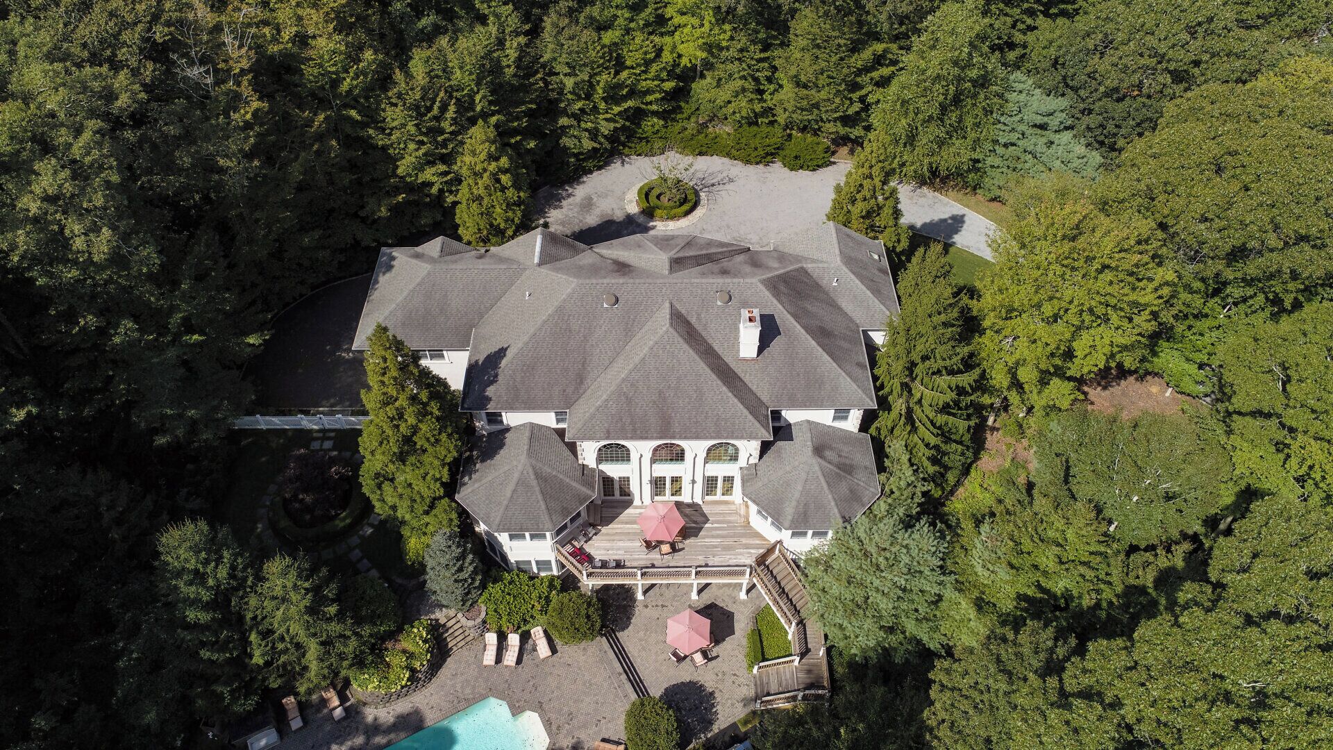 The 5,800 sq. ft. house sits on two secluded acres of land. A variety of bay windows and arched windows fill each and every room with a vast amount of natural light. Vaulted ceilings throughout amplify the sense of space. The house also features hardwood flooring throughout.