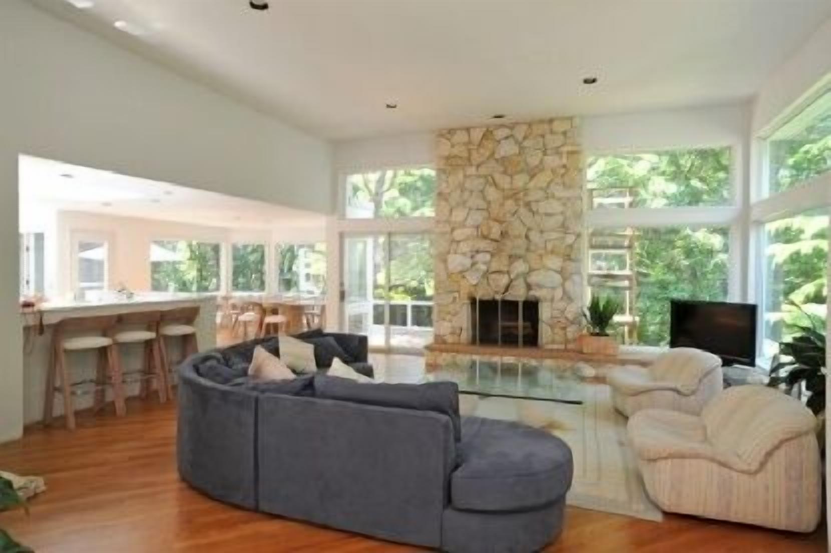 This is a luxury residence that is ideal for those who consider their privacy to be a treasured possession. It sits amidst the beauty and quiet of a diversified lush forest of tall, plush trees and plants that is the hallmark feature of the 500 acre parcel known as the Bell Estate. The green environment is incorporated into the house through the large expanse of fixed glass and skylights that account for 28% of the structure with no window treatments and secluded from all neighbors.