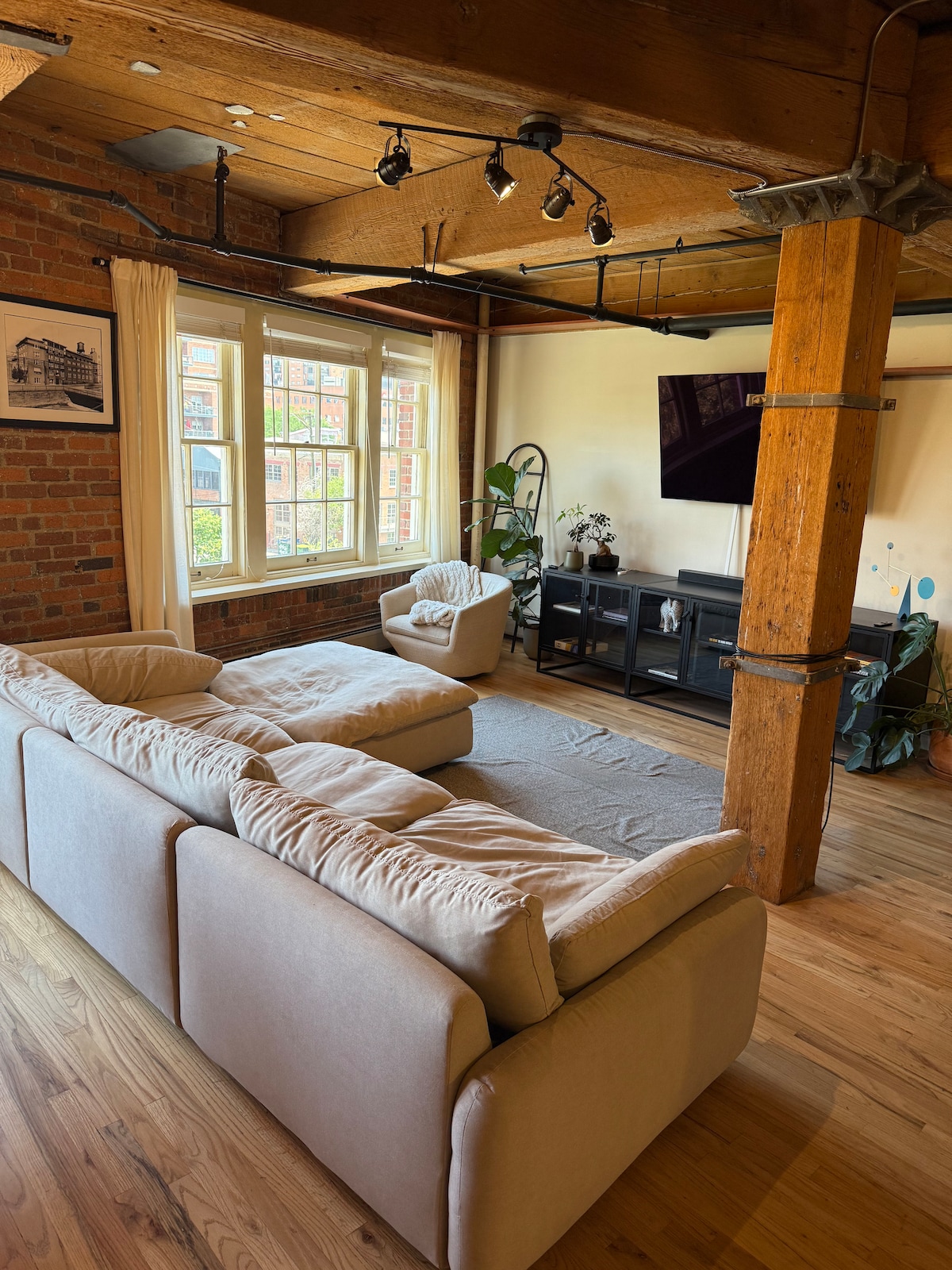 Inspired by the eclectic lofts of Williamsburg, Brooklyn, the home reflects a touch of NYC charm and radiates timeless charm with a splash of modern elegance. This impeccably renovated home began with a meticulous refinishing of every wooden surface, including the towering 18.5' ceilings, Douglas Fir timber beams, and gleaming hardwood floors. This historic gem offers a unique ambiance that seamlessly blends the past with the present