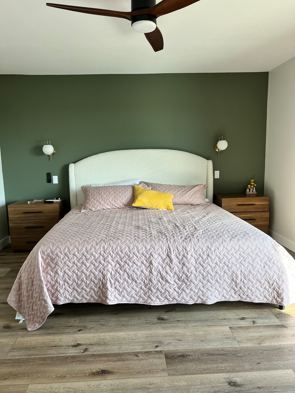*Master bedroom features a Cal King poster bed, 48" Smart TV, high-speed WiFi internet, and large Walk-in Closet! Adjacent to the master bedroom is a Master Retreat room that has two Privacy Folding Dividers, a Queen-Sized Aerobed, and additional Gel Mattress Pads for extra comfort.