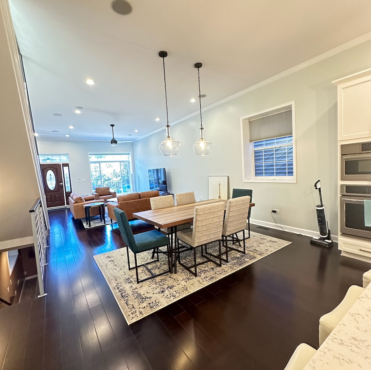 Our stylish and newly-built home in Logan Square has all of the space a family or group of friends traveling together needs - plus easy access to the best restaurants, bars, and shops the neighborhood has to offer (though with all-new appliances, you may find yourself cooking in a couple of nights)! We're a quick walk to the Logan blue line, so it's easy to get to O'Hare or the Loop from here. Free on-site 2 car garage. Have a great visit in this spacious, sunny, beautifully furnished house!