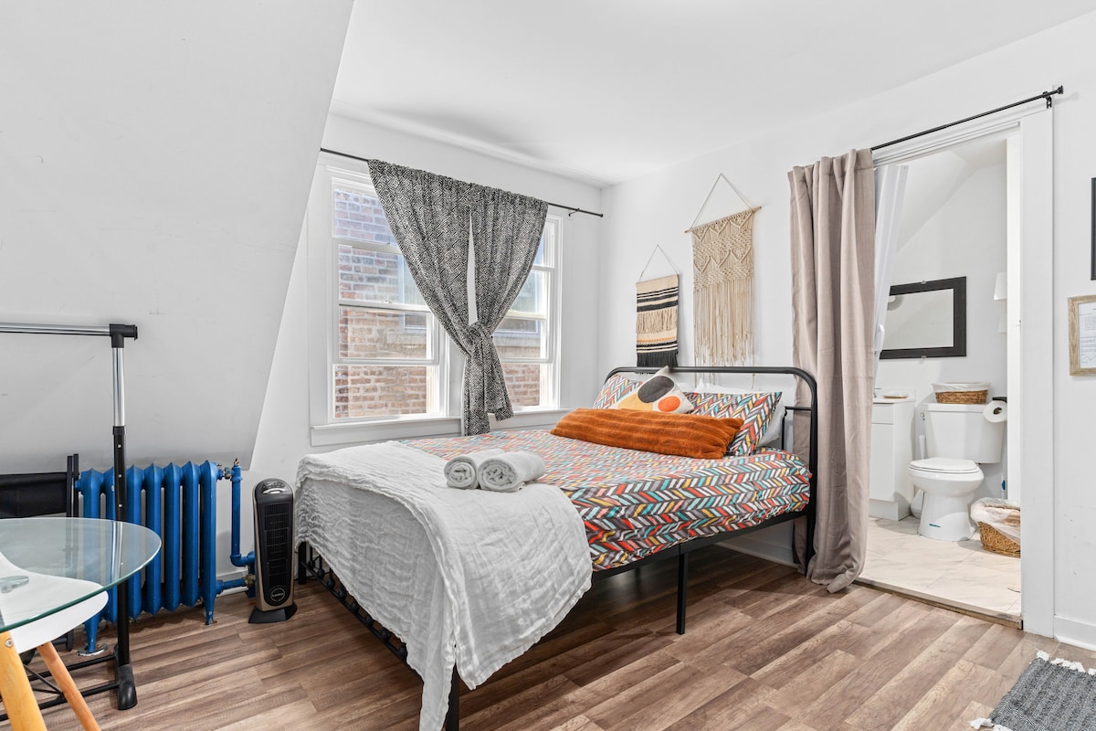 Welcome to our cozy top-floor 1-bedroom apartment! Enjoy modern finishes, a brand-new bathroom, and a super comfortable bed. Just a 6-minute walk to the Blue Line for easy access to downtown and O’Hare. Tucked in a quiet residential neighborhood, just about 3 blocks from trendy Logan Square’s top coffee shops, restaurants, and nightlife. Stay connected with fast Wi-Fi and get work done at the dedicated workspace. Free parking and complimentary early check-in/late check-out (when available)