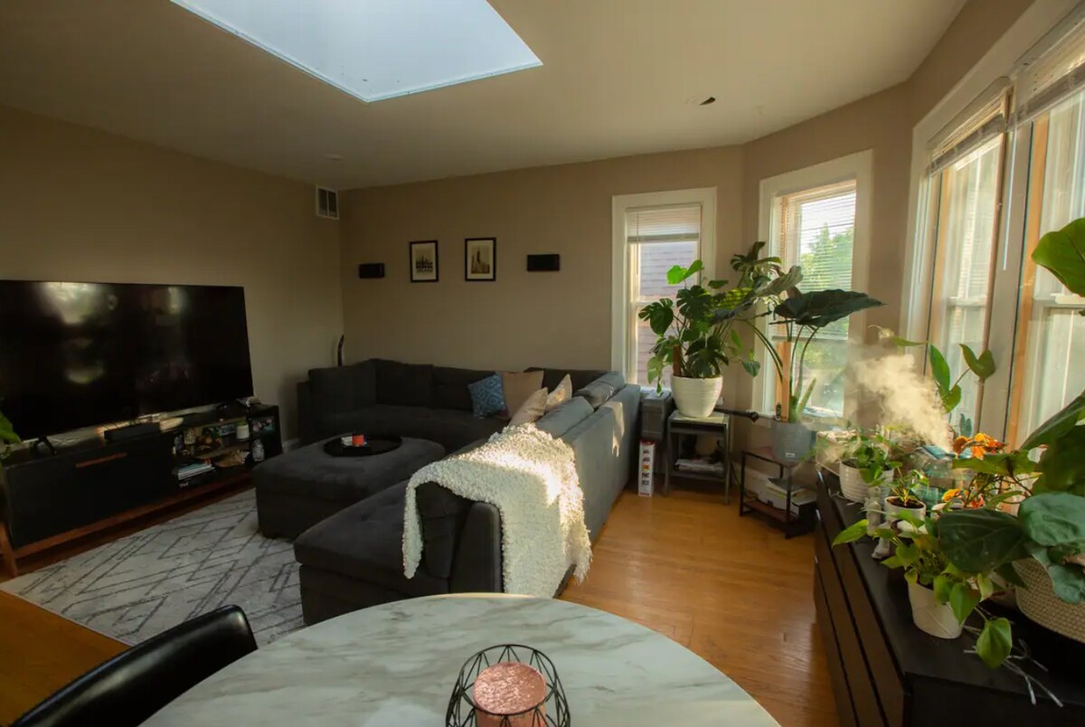 NOTE! Since it’s an attic, you’ll notice some sloped ceilings, especially in the bathroom.