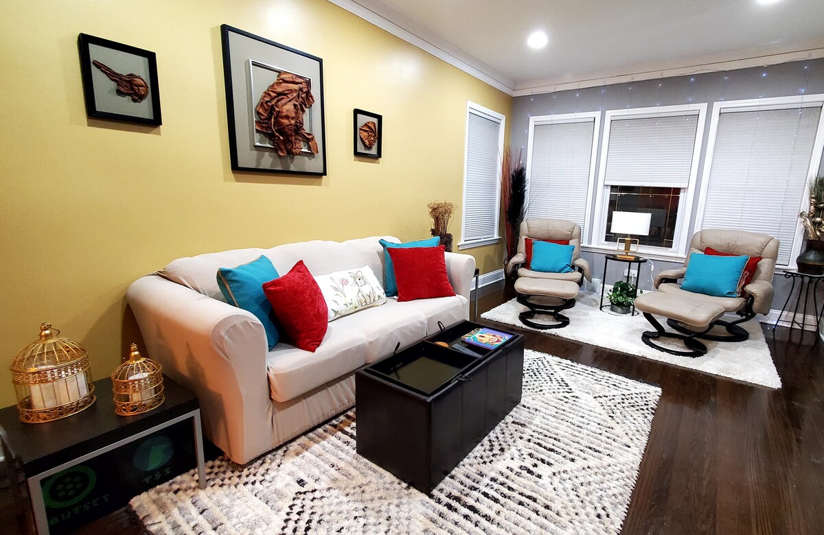 - "Our stay here was amazing! Host was quick to respond and very accommodating! Hoping to come back sometime! Would highly recommend!" - "We had such an excellent experience staying here. The place was squeaky clean, smelled nice, had plenty of places to sleep and also relax. There was bottled water in the fridge, laundry in the basement, and extra sheets and towels. The location couldn’t be better— so much of Chicago’s best within walking distance, and a 20 min drive or 25 min subway ride from O’Hare. Communication with the host was friendly, easy, quick, and she was flexible when we needed it. Every member of our group was impressed with this rental and I was the hero for finding it— thanks so much, Aya!"