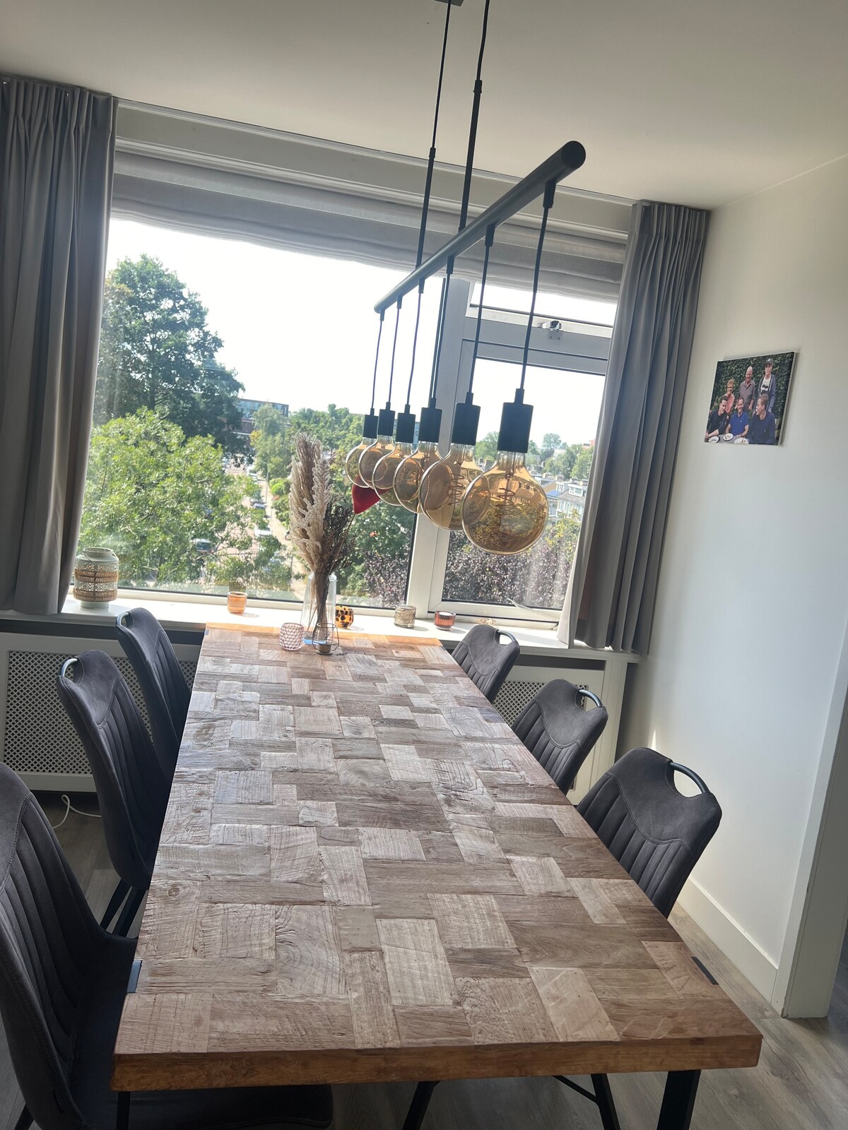 Livingroom: where you can relax, watch tv or read a nice book. from here you walk via the ensuite doors you walk into the eating area, where you find a large dinner table where you can have dinner with up to 7 people. From here you look into the open kitchen.