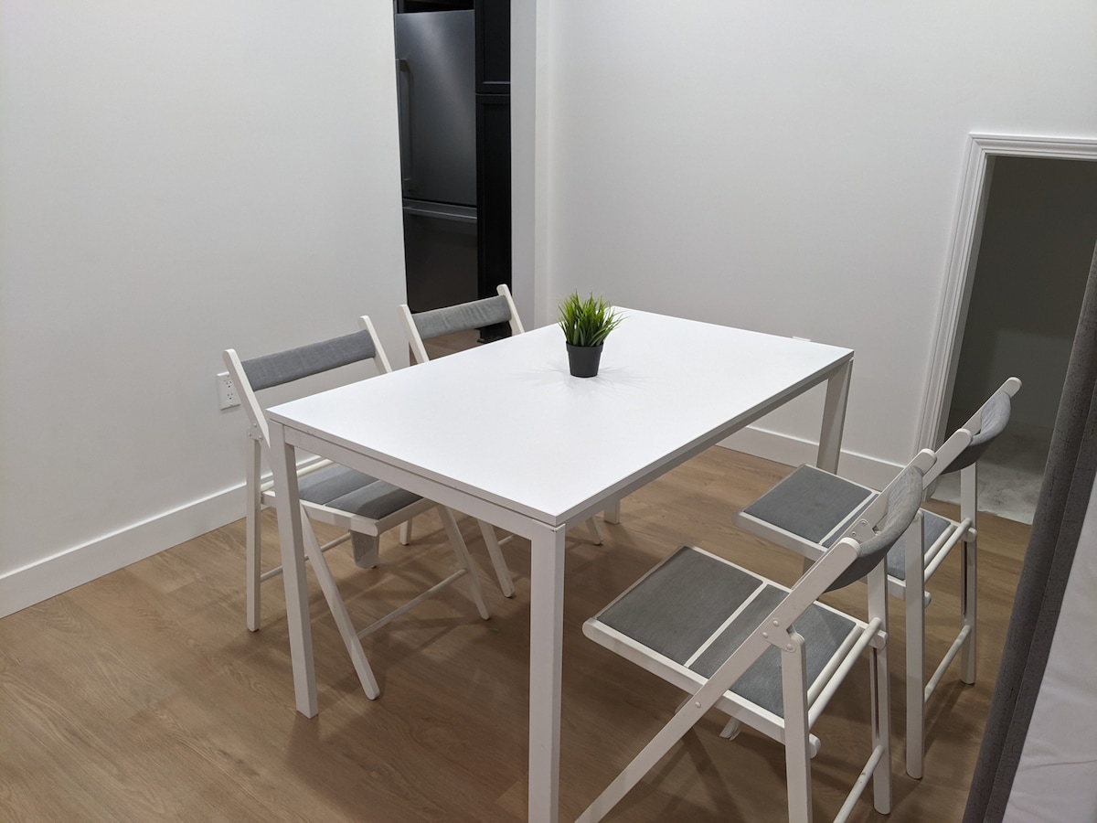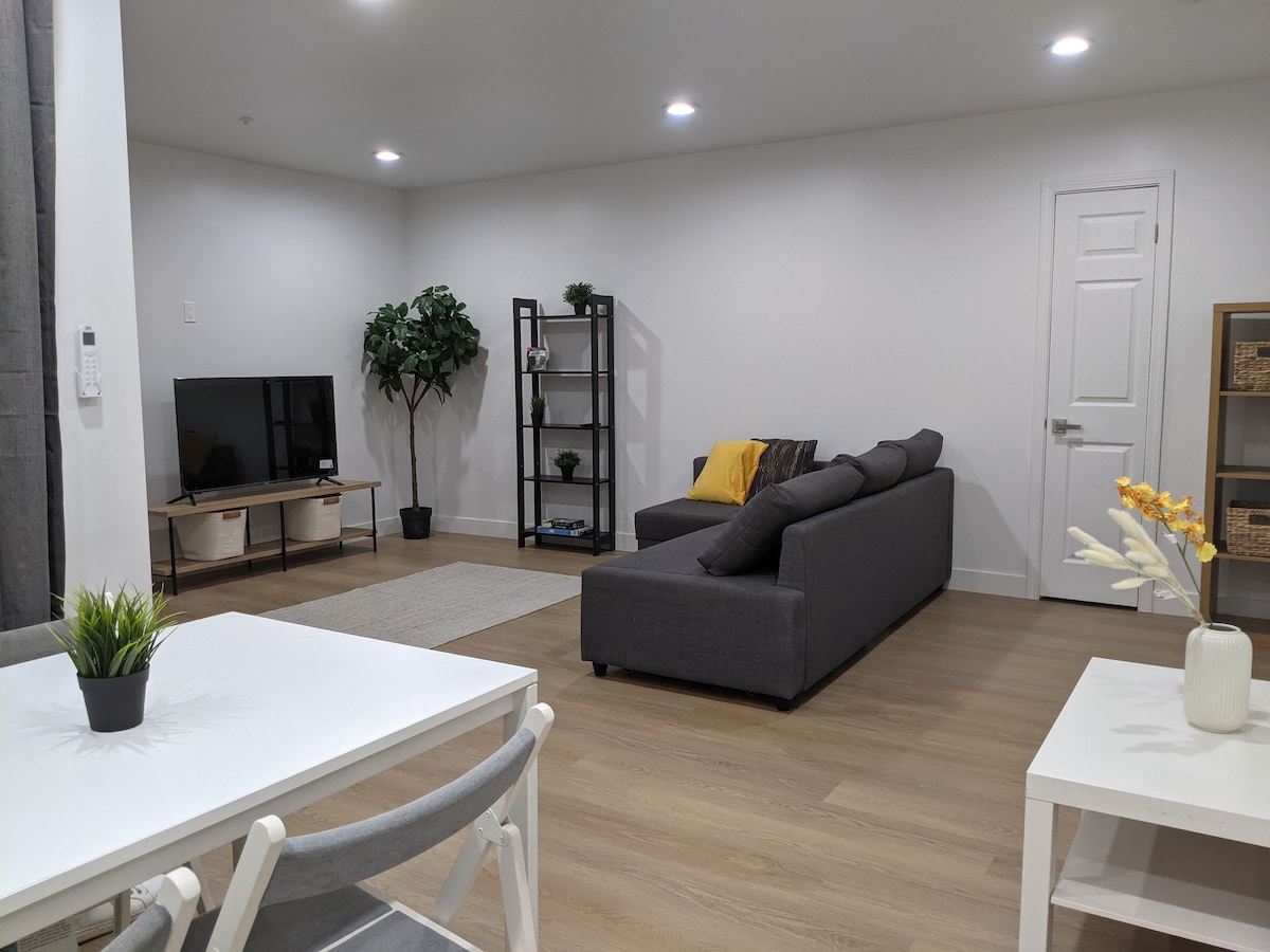 Premium place with washer&dryer in a completely new unit with equipped living room area. Spacious place with great amenities in a central location. You would be staying in a living room area (separated by a room divider if you'd like). This unit was just finished and still smells fresh. All-new appliances: dishwasher, wine fridge, counters. Enjoy a stylish experience at this centrally-located place.