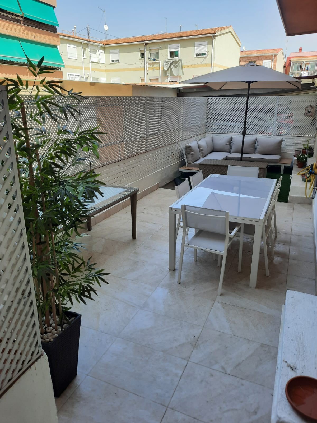 It is accessed from a small front patio that you can use if you smoke or to sunbathe in the summer. Access to the room is totally independent so you can come in and out at any time and enjoy the neighborhood and Madrid and your pace.