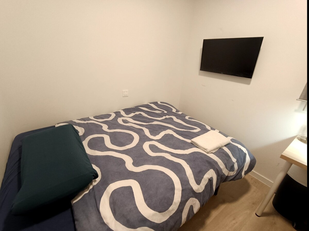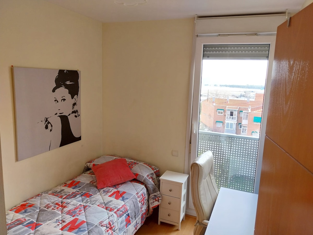 Room 5 minutes from Madrid ✈️ Barajas airport and 5 minutes from Madrid IFEMA fair, 6 minutes from Valdebebas Real Madrid sports city