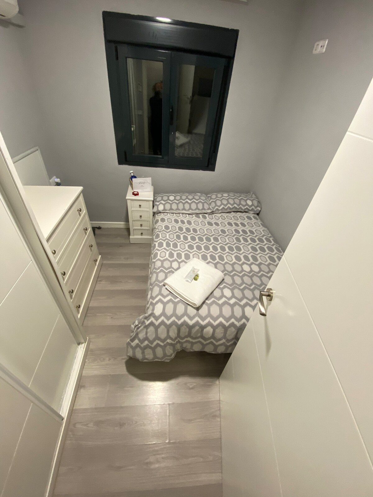 Double room with separate entrance (directly from the street) and private bathroom, the privacy of your own home nearby, without contact with anyone and with key pick-up by code. Brand new. 400 meters from Barajas Metro, 1 stop to the airport, 2 to IFEMA, and 15 minutes to Nuevos Ministerios in downtown Madrid. You can also walk to the airport in 20 minutes.