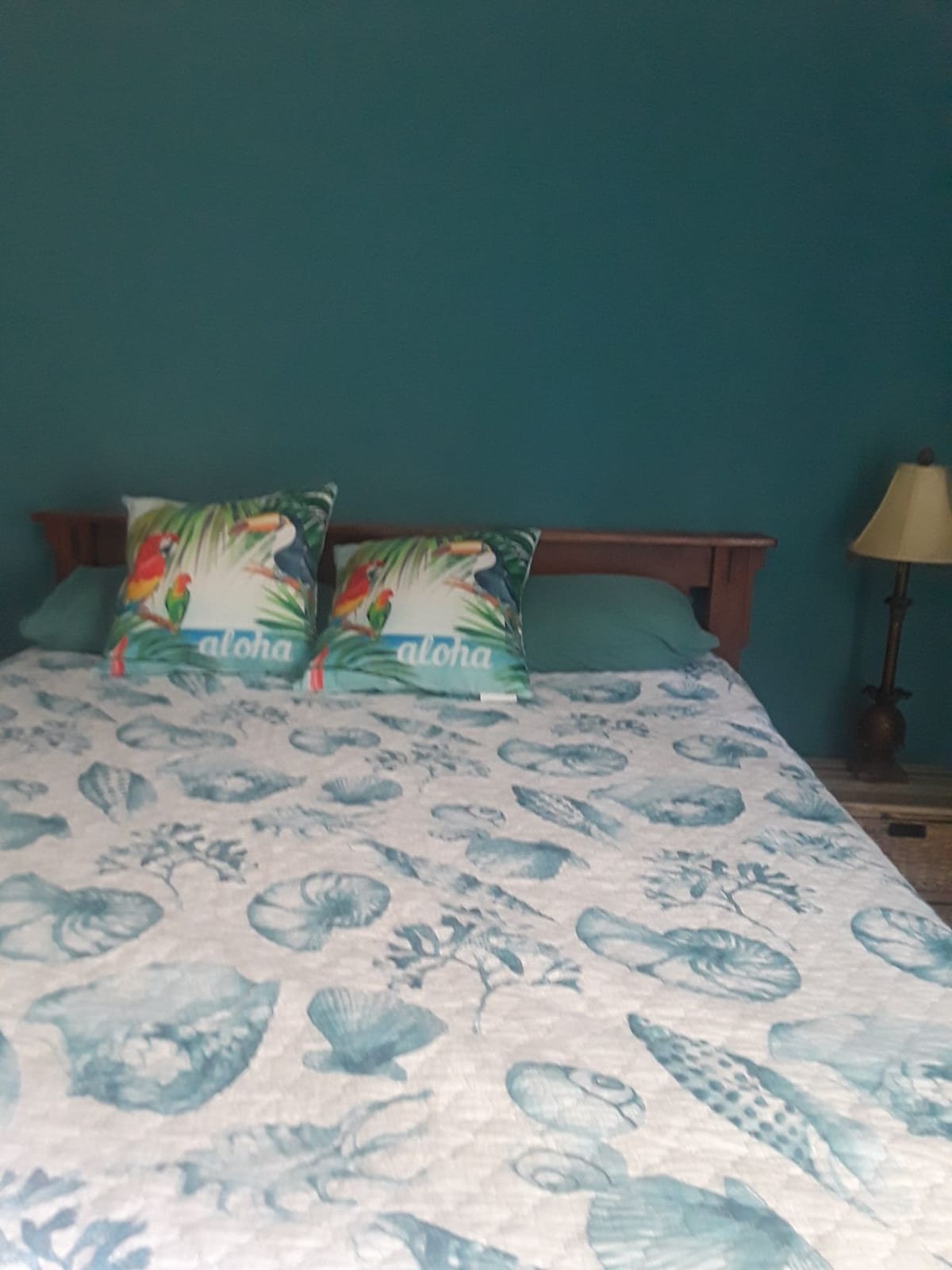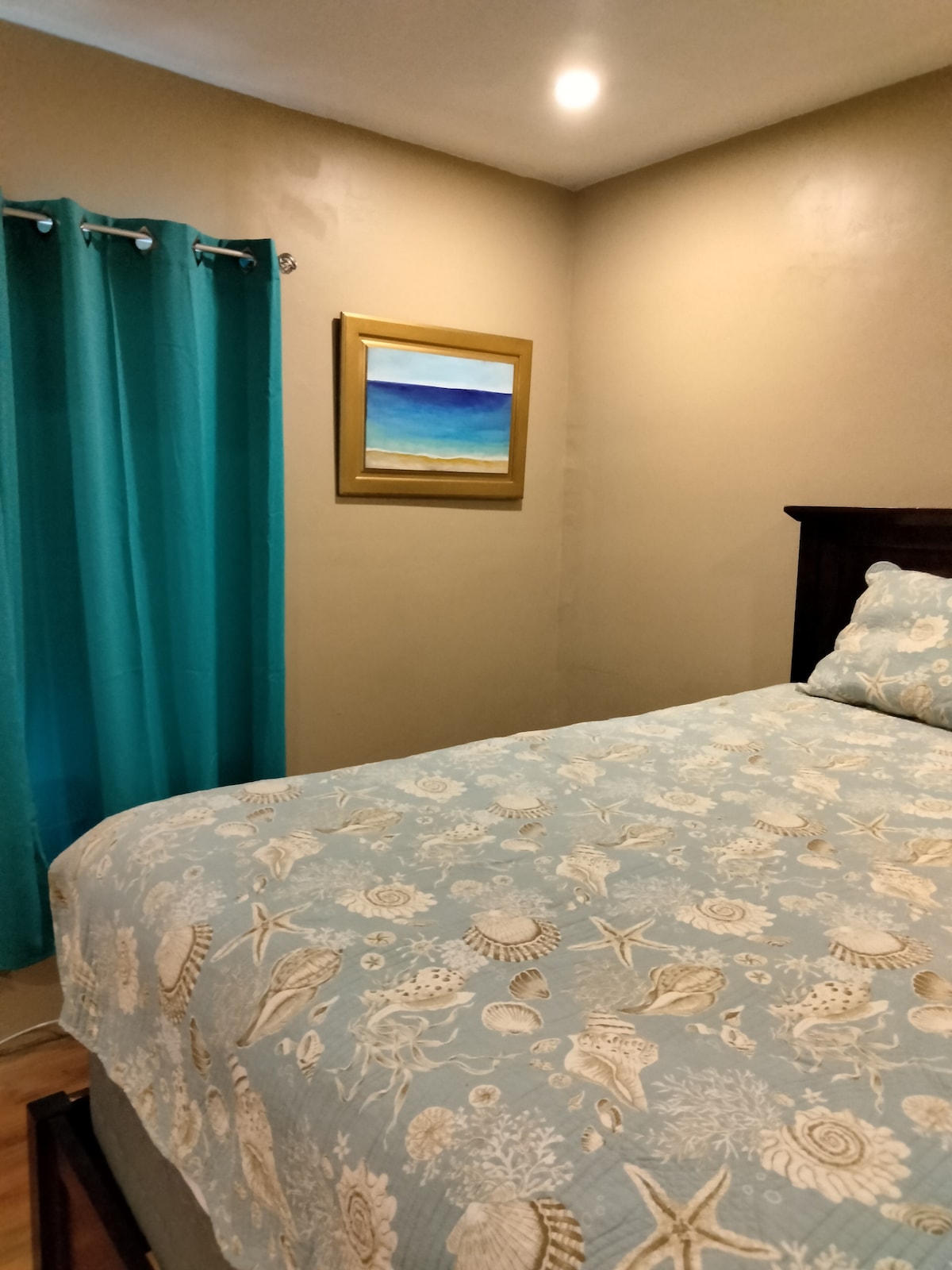 ~The bedroom has a queen size bed with fresh clean linens and plenty of pillows to make your stay comfortable. The couch can turn into a full size bed for your young children. You can find extra comforters, towels, blankets etc in the wardrobe.