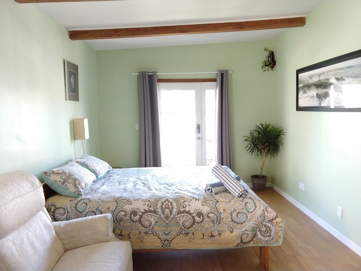 Completely private studio with private entrance. Note studio is attached to home, this is not a cottage. Backyard is used by owner occasionally, owners dog and can be used by your dog. Inquire about fee for dog. Also, INQUIRE ABOUT OUR (almost identical) 2nd RENTAL UNIT, if traveling with another couple, or more family.