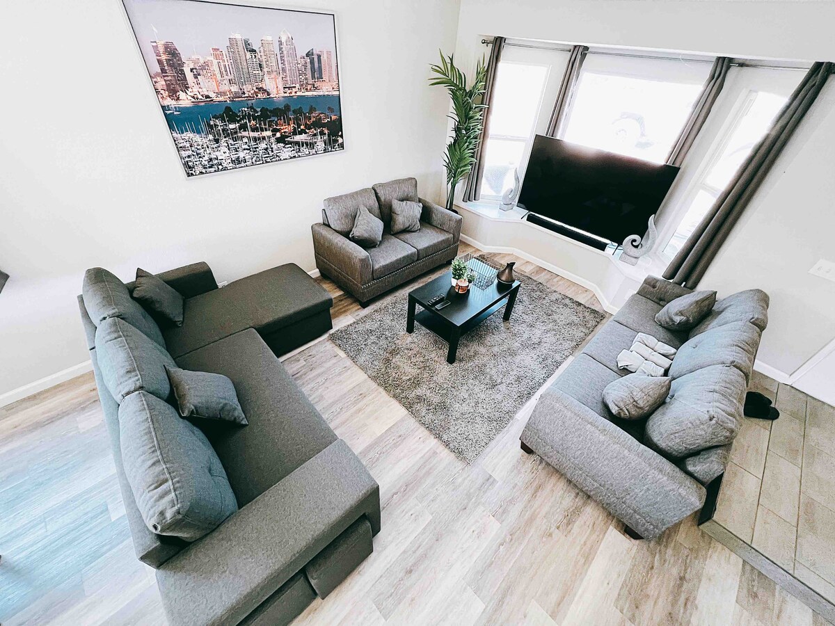 Nestled in a quiet, peaceful, and family-friendly neighborhood, this home offers two private living rooms with TVs and extra sleeping arrangements, ensuring everyone's comfort. Stay entertained with a 75" Smart TV and high-speed wifi.