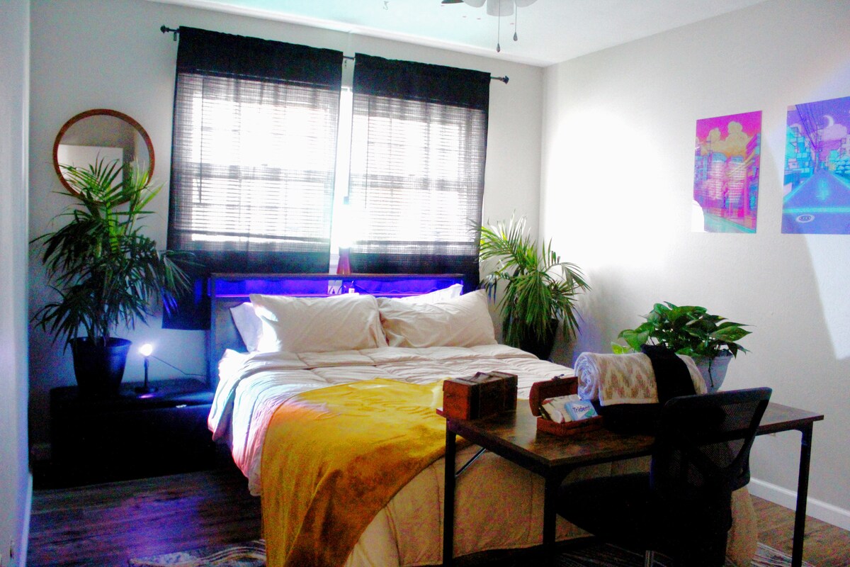 Bedroom and bath have clean linens for your stay. King size memory foam mattress ensures that you get a comfortable sleeping experience.