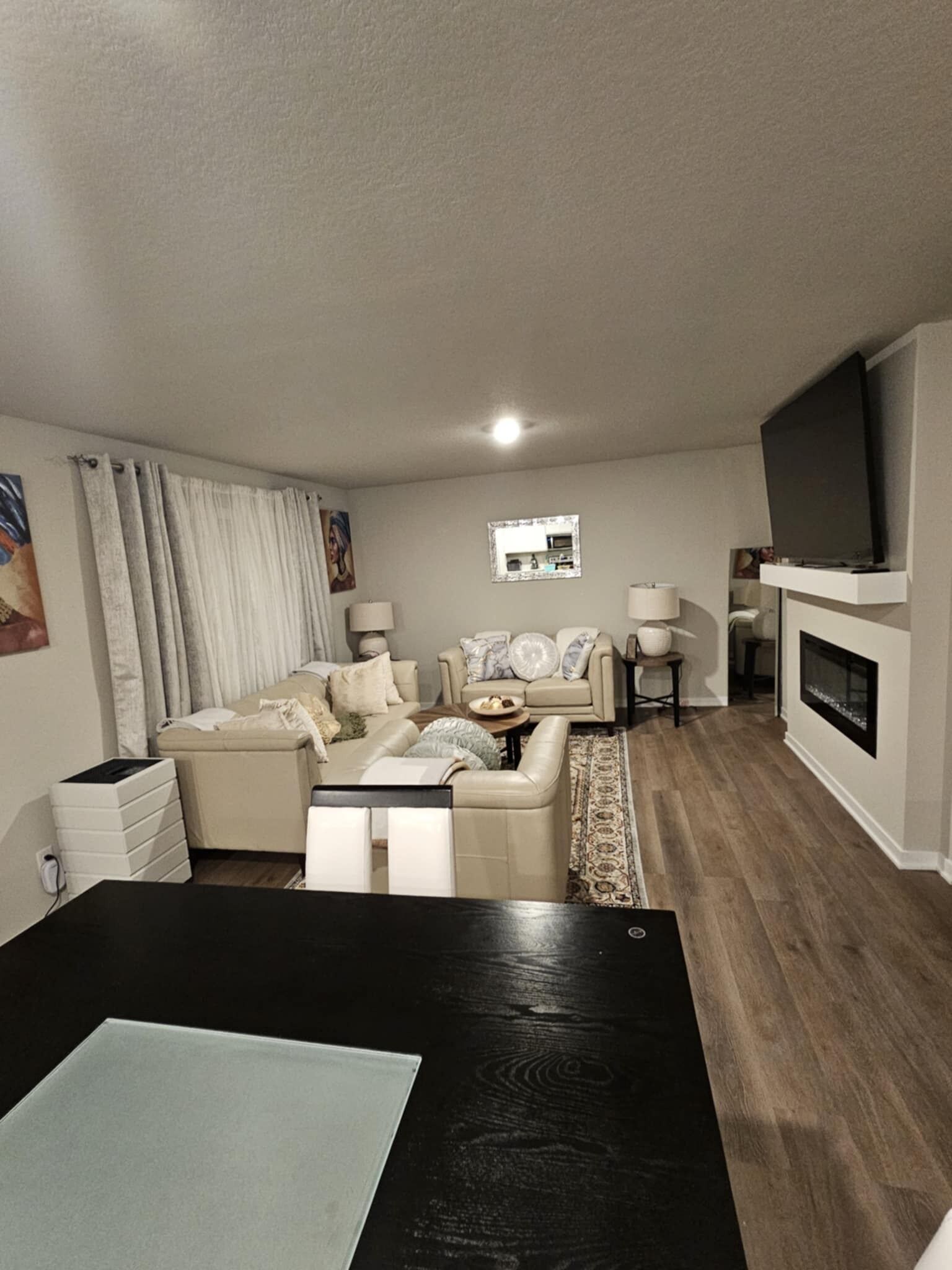 Basement has a large L shaped sectional couch and a decent amount of wrestling mats (cause duhhh Iowa🤼). Kids can crash on the wrestling mats with sleeping bags and grown ups can have the beds!