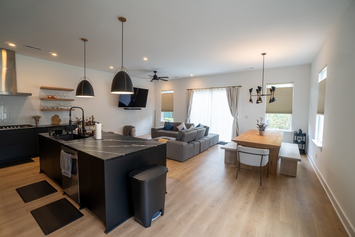 Experience refined comfort in this brand-new 4BR luxury retreat just minutes from Uptown and the Music Factory. Designed for elegance and ease, it boasts a chef’s kitchen, spa-inspired baths, designer furnishings, and thoughtful touches throughout. Whether you’re working remotely or exploring the city, enjoy blazing-fast Wi-Fi, smart TVs, private parking, and walkable access to top dining, green spaces, and the streetcar. Ideal for business travelers or those seeking a stylish getaway.