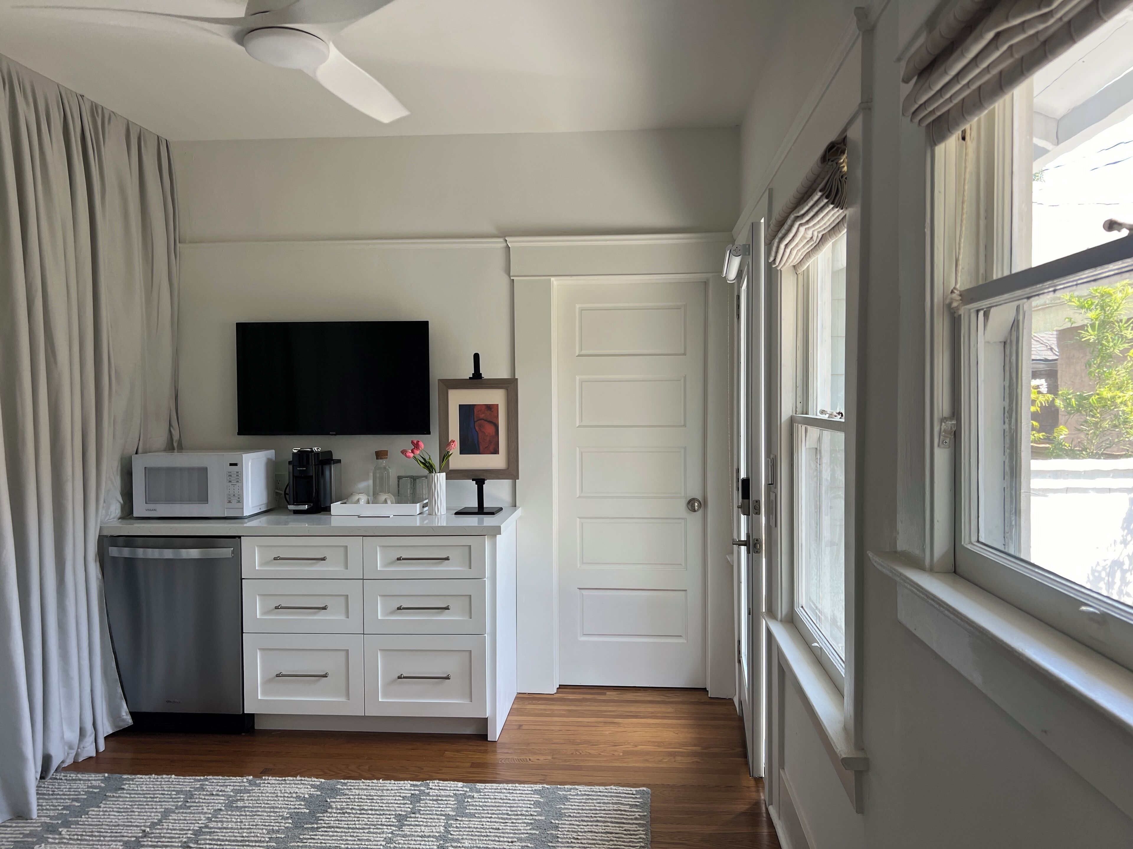 Located in the heart of Mission Hills and walkable to downtown area with local shops and cafes. Enjoy a cozy, tranquil retreat in this one-bedroom suite designed for two. Featuring a plush murphy king bed, with a flat-screen TV, and a kitchenette, it’s perfect for relaxation. While the suite is accessed via private entrance, please note it is attached to an office that may generate noise during weekdays until 5:00pm. We also live on the property in a separate house.