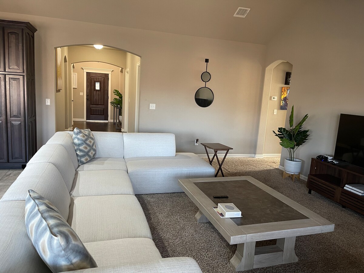 Escape to this newly-built fully furnished retreat in a charming South Tulsa/Bixby residential neighborhood. Enjoy bright spaces & modern design complete with luxury finishes for a refreshing and peaceful stay.