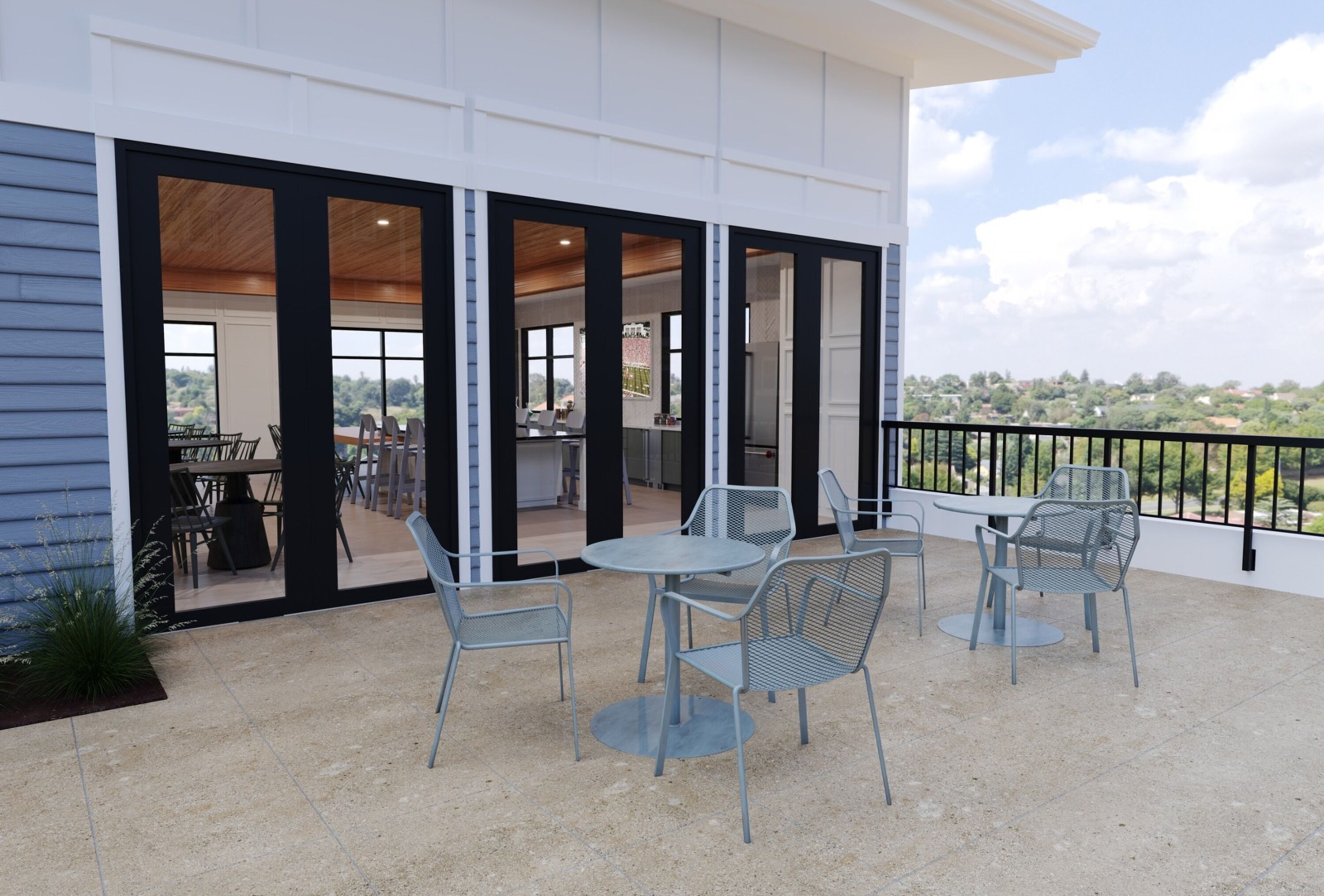 ⤳ Patio seating for four provides a perfect spot for morning coffee or evening chats.