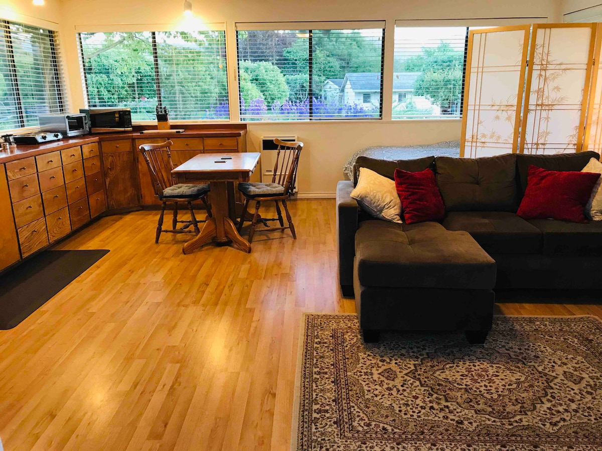 Right in the middle of sunny Blue Lake, our beautiful studio is surrounded by organic gardens and fruit trees. It's an urban homestead, perfect for the single traveler or couple looking for rest and rejuvenation.