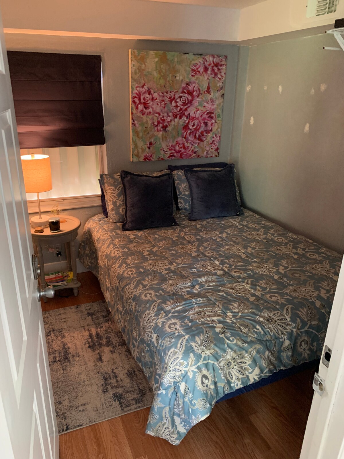 The living room (shared with one other roommate) is equipped with a Roku, high speed internet, mini fridge, microwave and dishes. The newly renovated shower and bathroom is shared.
