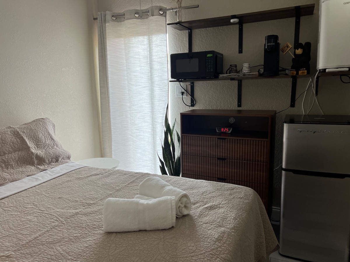 Located in the heart of downtown East Boca, only 5minute drive from South Beach Park. (Our beautiful Beach) Beautiful, sweet, cozy and elegant small space. Perfect for someone who enjoys a peaceful relaxing environment. Private back yard, private entrance. Equipped with a sink, oven/microwave, fridge, tea maker, single stove burner pots, pans. With your own private bathroom and shower. You will feel like you are in a secluded jungle paradise.