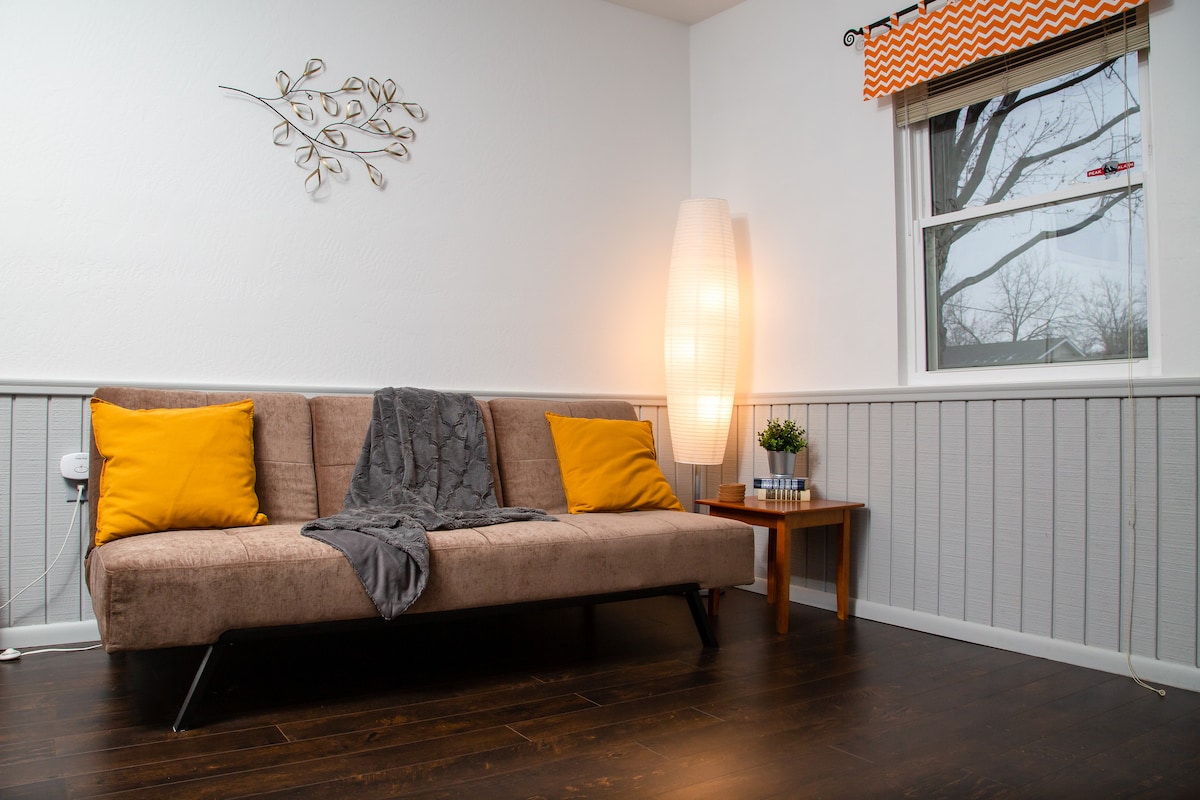- "We really enjoyed our stay here. It was very clean. We felt at home immediately. Very cozy. " - "Super clean and will stocked. Easy entrance. Easy parking. A few blocks from downtown. Decor was fun. Wonderful alternative to a hotel stay. We enjoy making our own meals so the full kitchen and large dining table was wonderful. Nice to get a start on vacation laundry during down time. Going home with all clean clothes is a mom win. Highly recommend giving this place a shot! The pictures do not do it justice."
