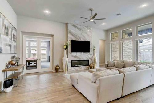 Offering a garden, HTX Luxe Vibes w Private Pool & Spa - Perfect 4 Groups & Family provides accommodations in Rosenberg. This vacation home features air-conditioned accommodations with a patio. With free Wifi, this vacation home offers a TV, a washing machine, and a fully equipped kitchen with a dishwasher and oven. Towels and bed linen are featured in the vacation home. The accommodation has a fireplace.