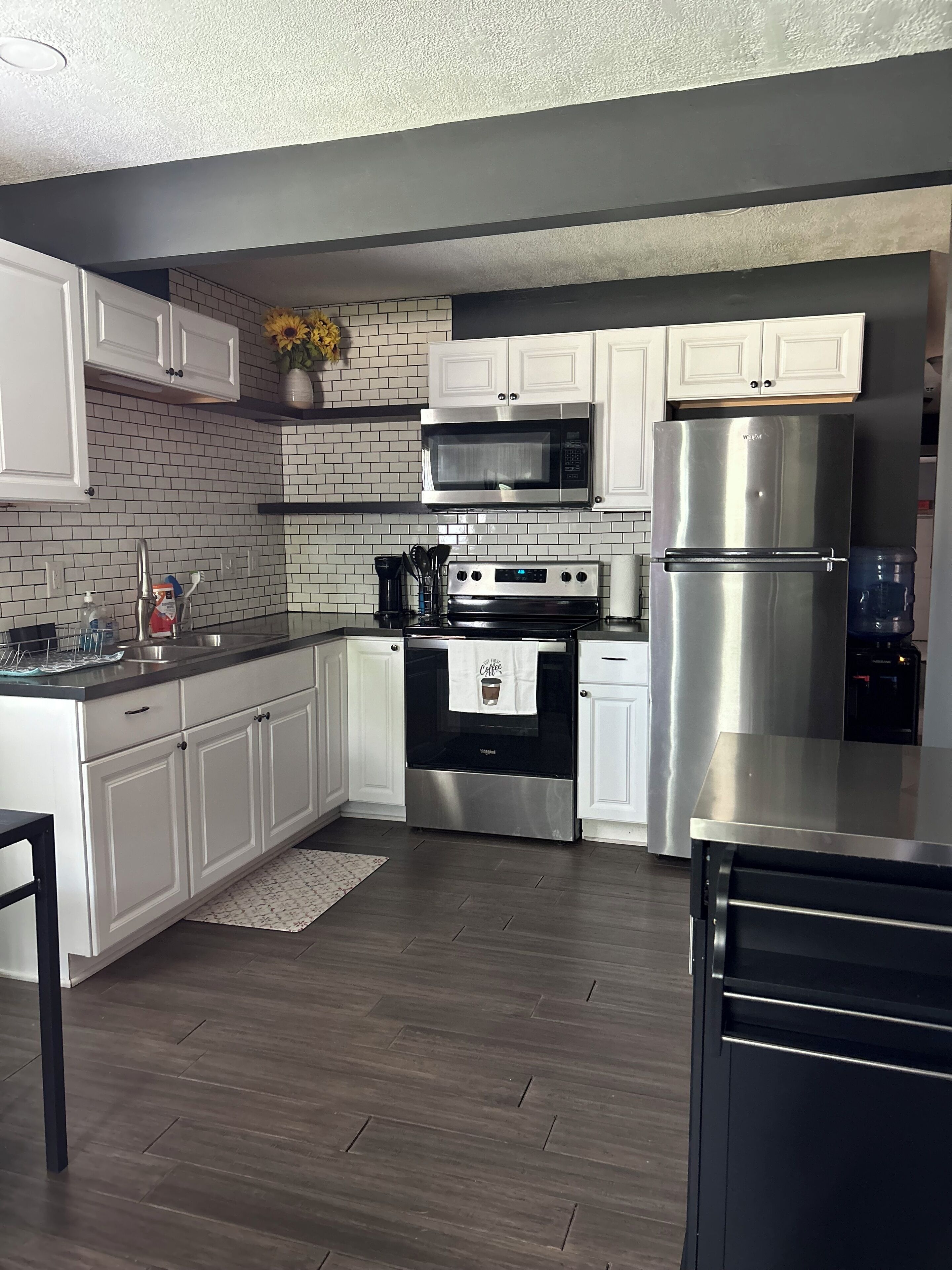 Freshly painted and tastefully updated, the home offers modern comforts including air conditioning, heating, a TV, and a laptop-friendly workspace. You'll find thoughtful touches like hangers, wine glasses, a blender, a toaster, and more to make your stay feel like home. Parking is convenient, with space in the driveway, rear parking behind the house, and an additional street spot in front. Self check-in is easy with a lockbox located on the front porch.
