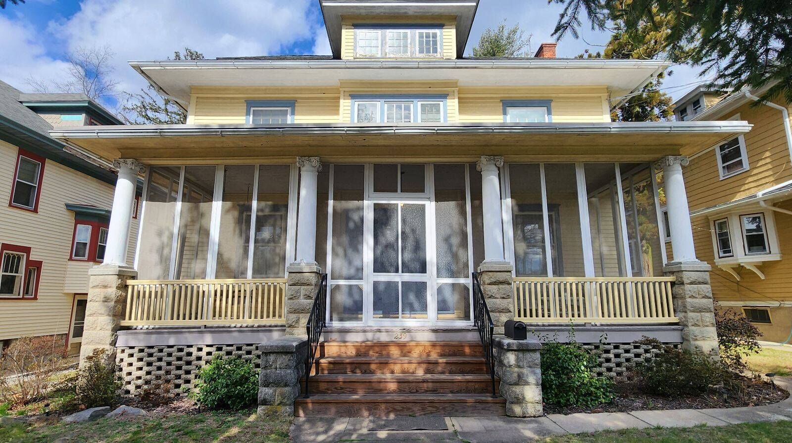This elegant post-Victorian home is perfect for family gatherings. Timeless details like ornamental casings and moldings blend seamlessly with classy craftsmanship. Gracious living emanates from the vintage foyer, showcasing a wide walnut staircase and expansive ceilings. Well-maintained, gleaming wood floors, formal living and dining rooms envelop the home in refined comfort. A delightful porch swing and wicker furniture on the screened-in porch offer a warm welcome to visitors.