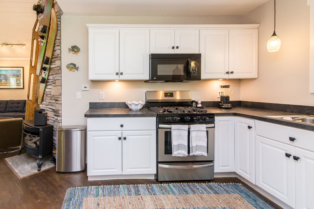 Whether you’re preparing a feast or just heating up leftovers, you’ll have everything you need — from stainless-steel appliances to a wide variety of utensils, spices, and thoughtful touches.