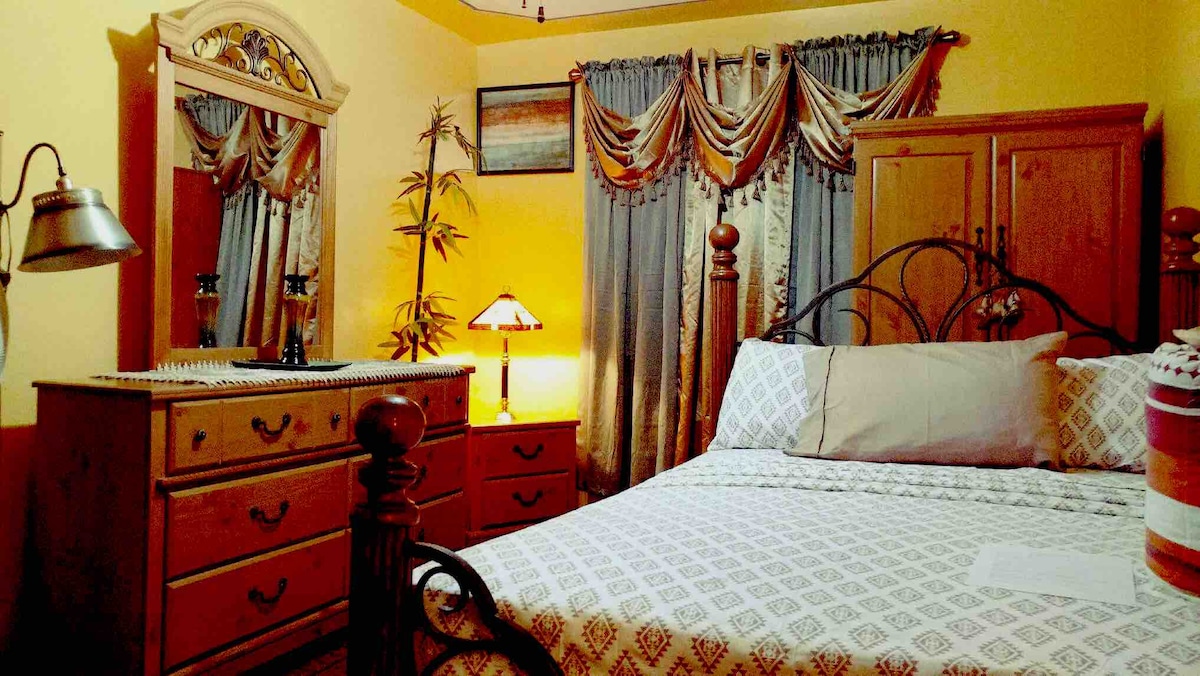 This large room has a queen sized mattress perfect for couple traveler or if more than one person stays an extra mattress available if needed. I provide clean sheets, pillow cases and towels upon arrival. Fully furnished, with kitchen & bath shared with other guests when you rent a room.