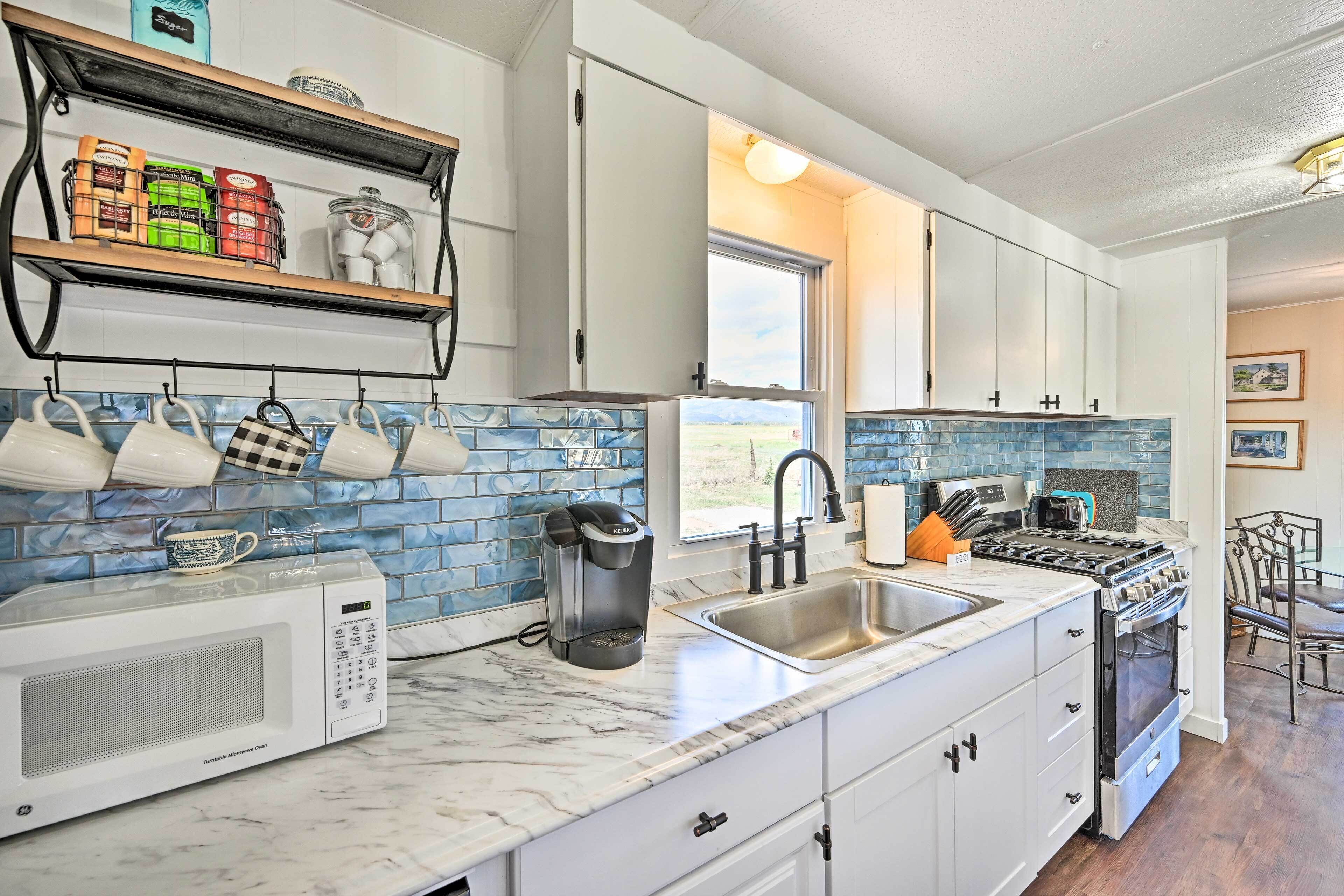 Make use of the fully equipped kitchen; cookware includes a full set of pots and pans, crockpot, roasting pan, and a stocked pantry.