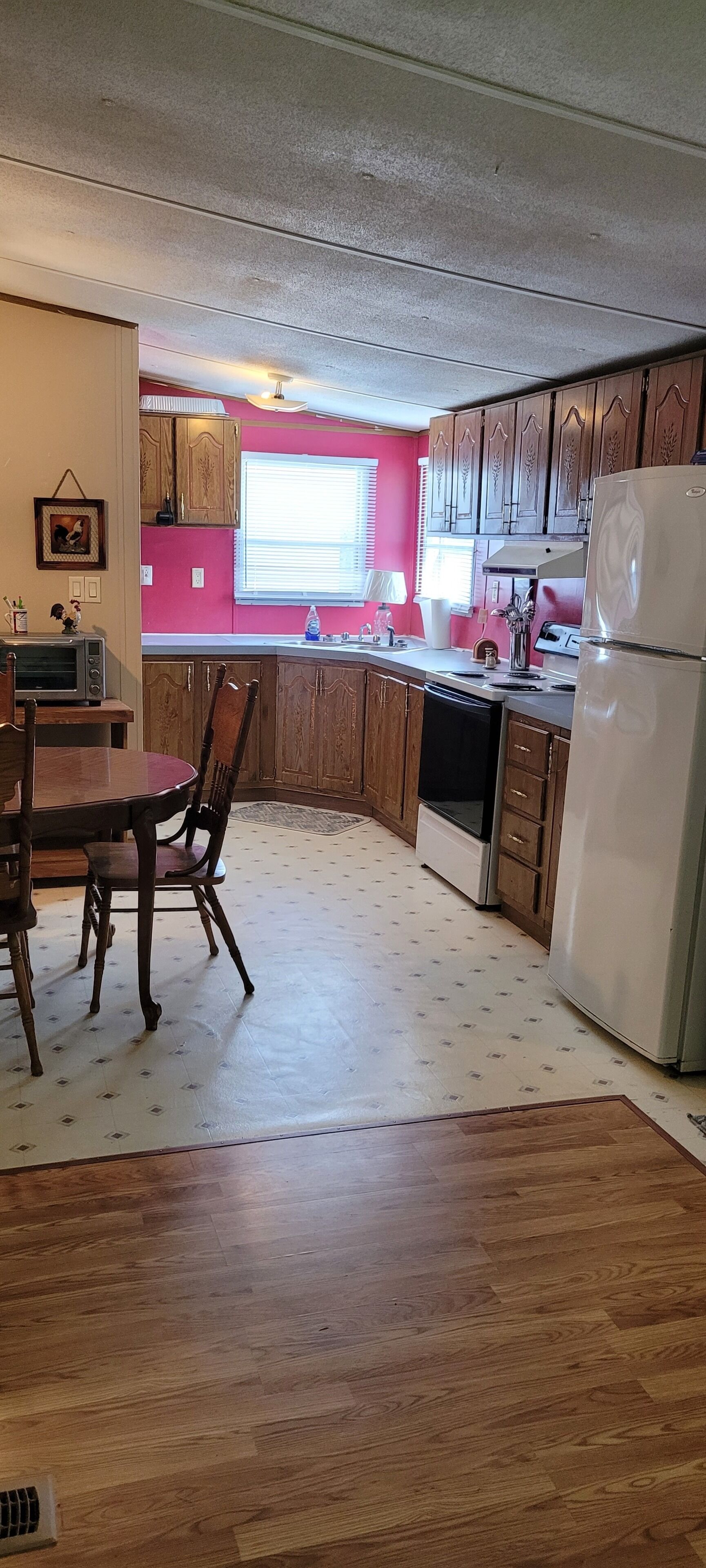 Full Kitchen with full size electric stove, refrigerator, microwave, coffee maker, all the gadgets, pots & pans needed to make you feel at home.