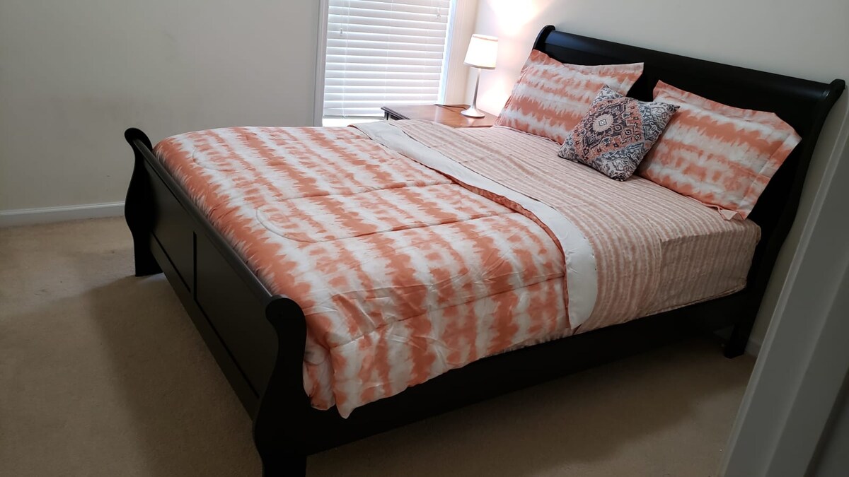 Just minutes to downtown Buford and Sugar Hill,it is newly renovated ! This spacious bedroom ,with a shared full bathroom. It will share a fully stocked kitchen, dining areas with other guests.This is a newly renovated bedroom.