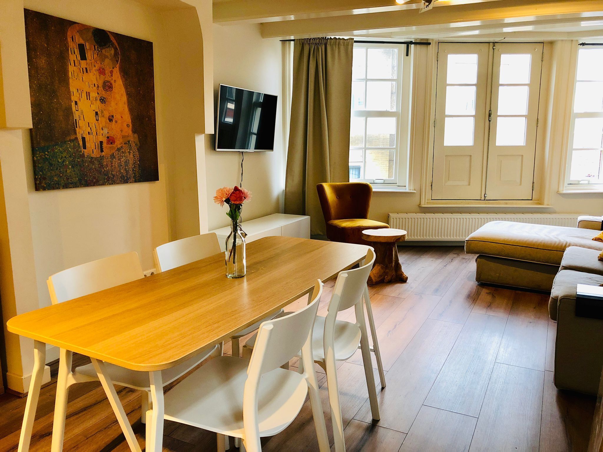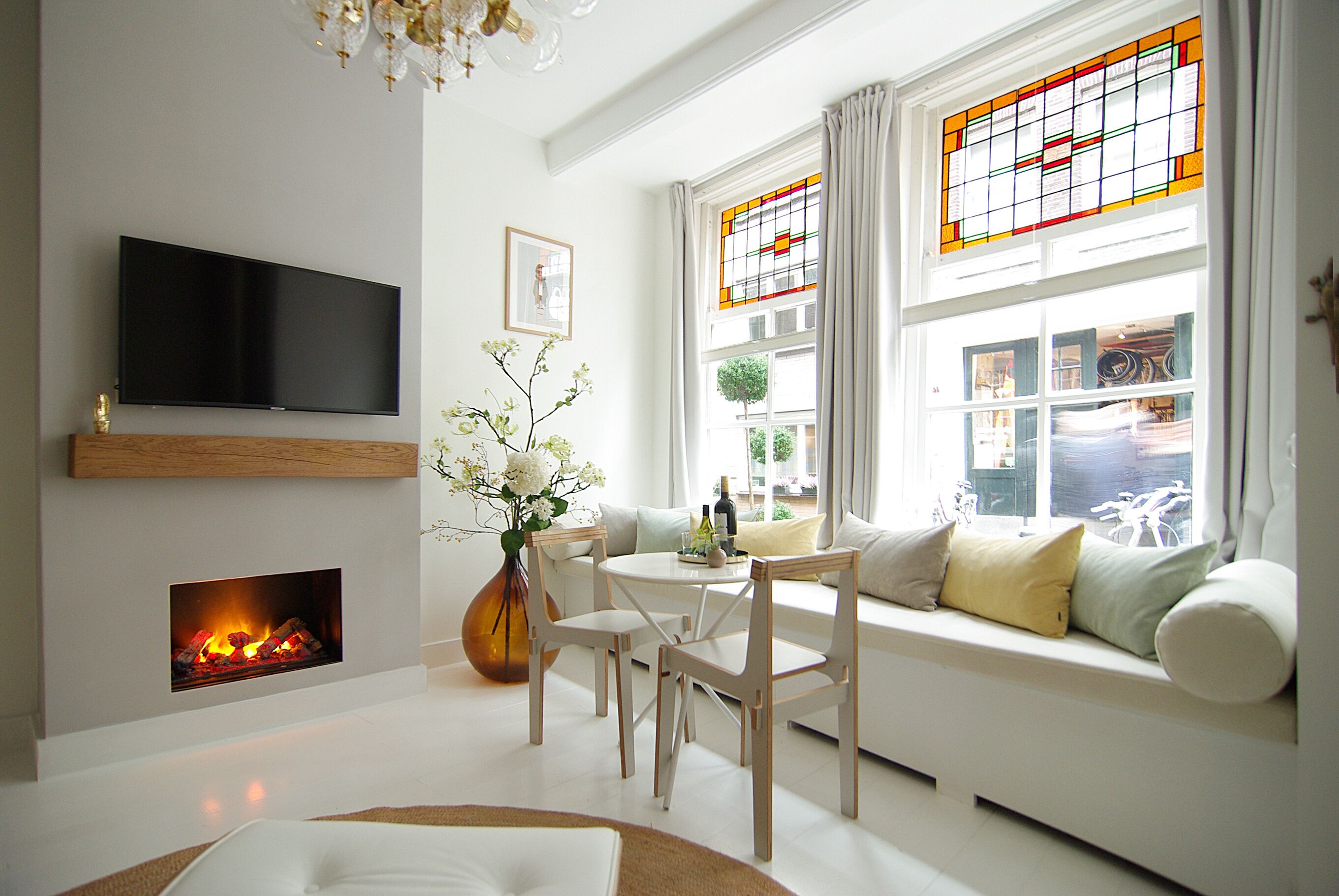 Through the five windows in your living room you will see the canals, three bridges and many monumental canal houses.