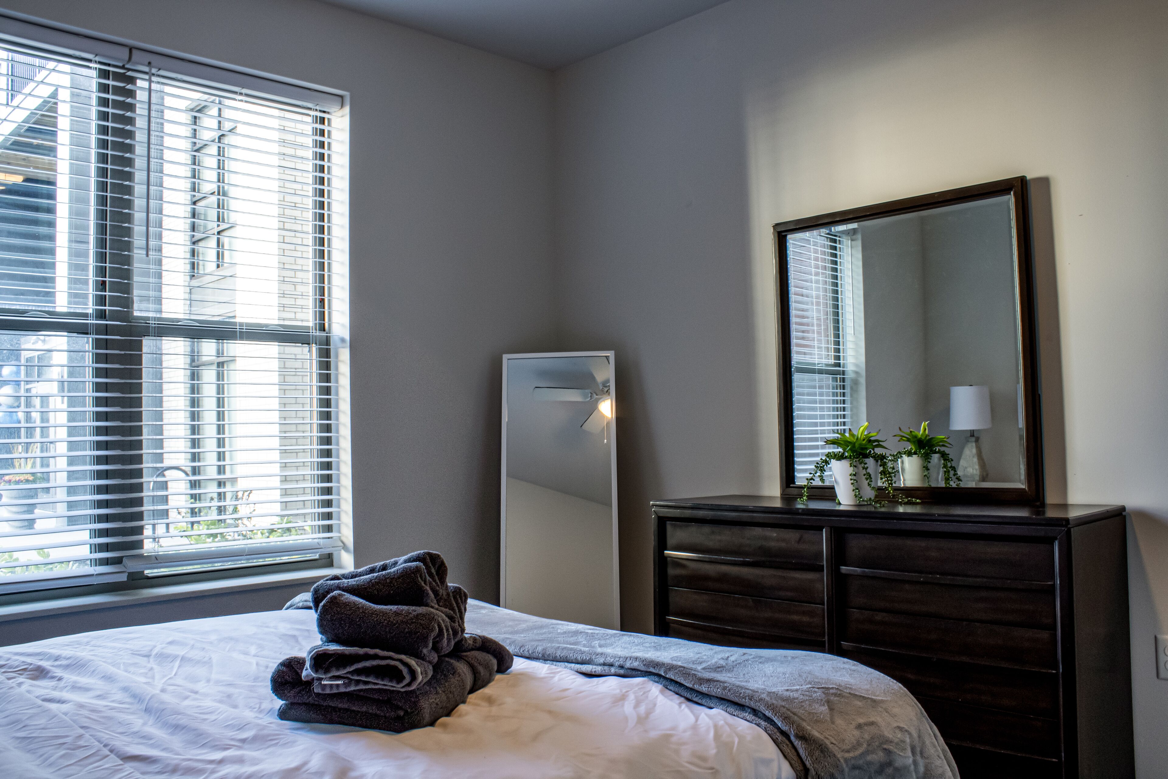 Keep it simple at this peaceful and centrally located space. This beautifully designed apartment comes with an open floor plan and soaring ceilings, individual patio, spacious kitchen with granite countertops, and underground parking. Crafted with you in mind with a full serviced kitchen where you will have all the tools you need to cook a great home meal, fresh linens, towels and complimentary toiletries. This is a great location near hospitals, shopping centers, night life and easy access to highways.