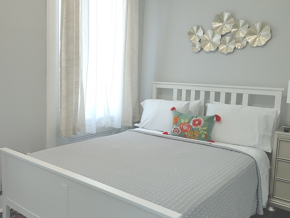 Our historic 2 bedroom town home is located in the beautiful historic district of Burlington, NJ, less than 25 miles to center city Philadelphia and about an hour and a half to New York City. We are close to Sesame Place too (if you have kids you know what I’m talking about!)