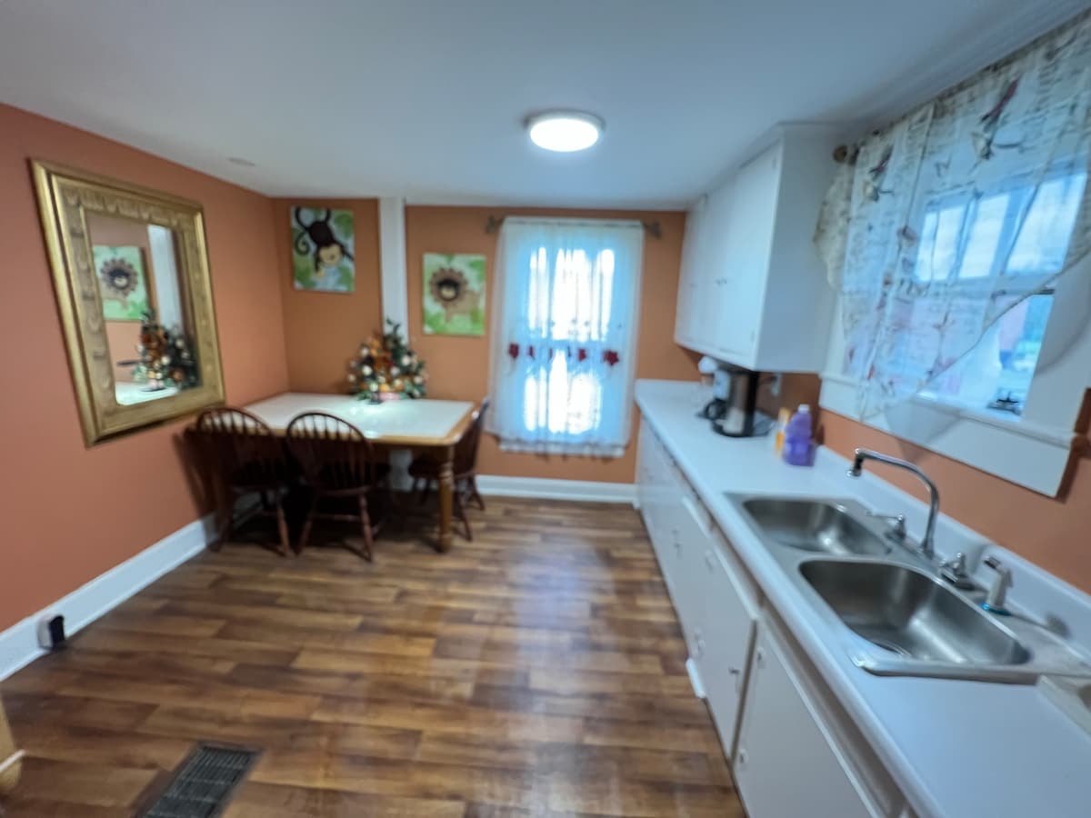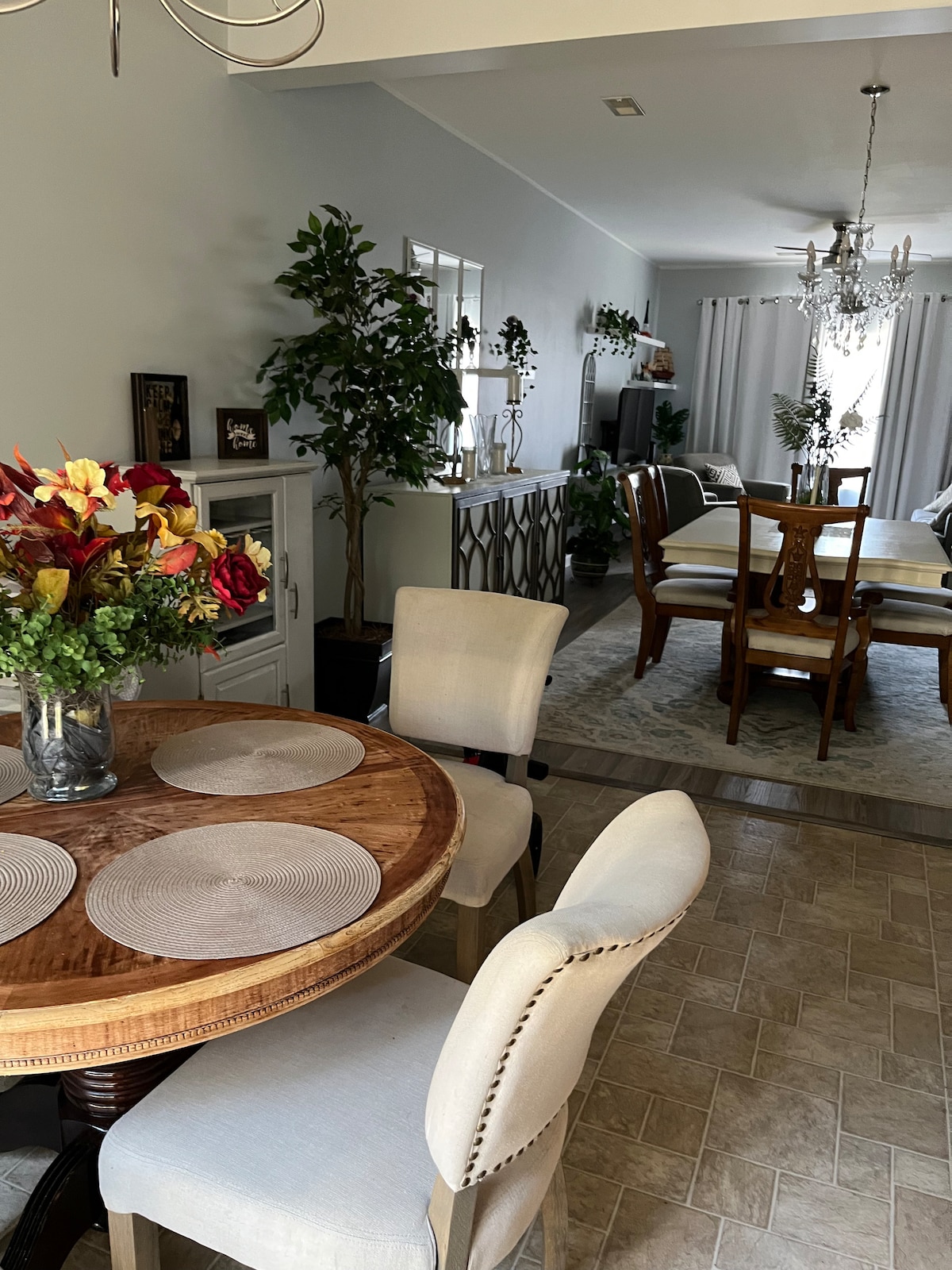 ✔️ Spacious Family Room: Plush couch, smart TV, dining area, and remodeled kitchen.