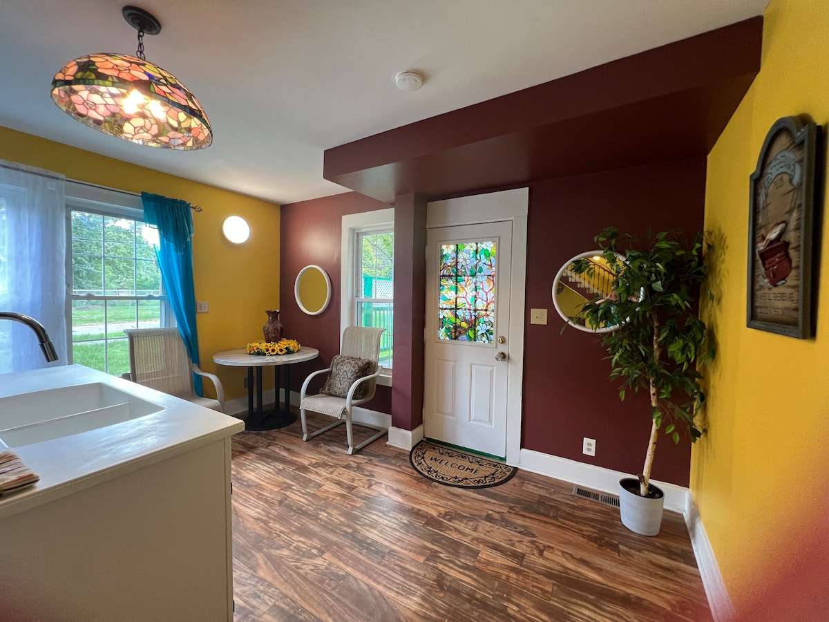 Welcome to our charming ground-floor unit in a renovated triplex, just steps from Arboretum Park. Located in Burlington’s historic district, this family and pet-friendly retreat features vibrant décor, a covered porch, and a spacious yard with a BBQ grill and firepit. Inside, enjoy a fully equipped kitchen and thoughtfully provided fans and heaters for added comfort, as the unit shares a thermostat with the main house. Perfect for relaxation and a memorable getaway!