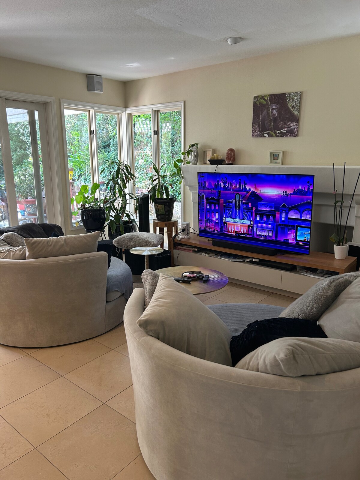 Large living space equipped with an Amazon voice controlled HD TV with smart apps already downloaded and ready to be enjoyed by you. For music, there are surround sound speakers that you can connect to Bluetooth.